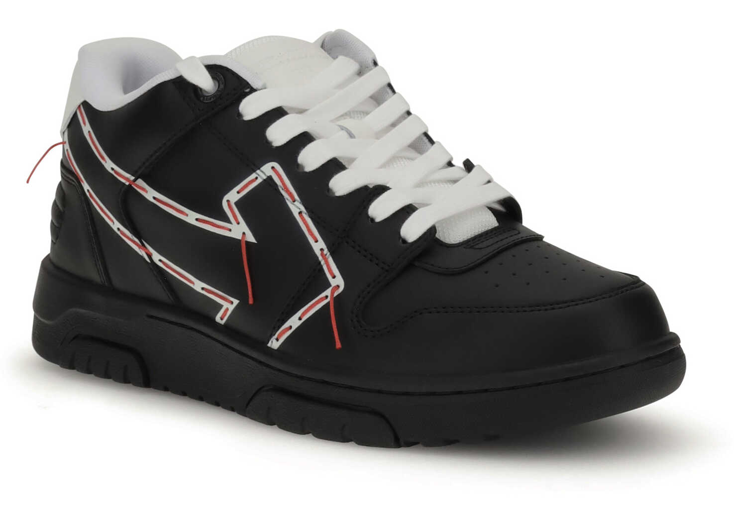Off-White's Stitched Arrow leather Sneakers are a masterpiece of urban-chic style. The front lace-up closure ensures an adjustable and comfortable fit. The iconic side panels with contrasting Arrow embroidered logo are a distinctive detail that immediately recalls the brand's aesthetic. The round, perforated toe offers a sporty design touch while also ensuring breathability. The applied zipper tie tag on the front adds a signature Off-White accent, while the contrasting logo on the heel completes the look with a recognizable, luxe touch.
