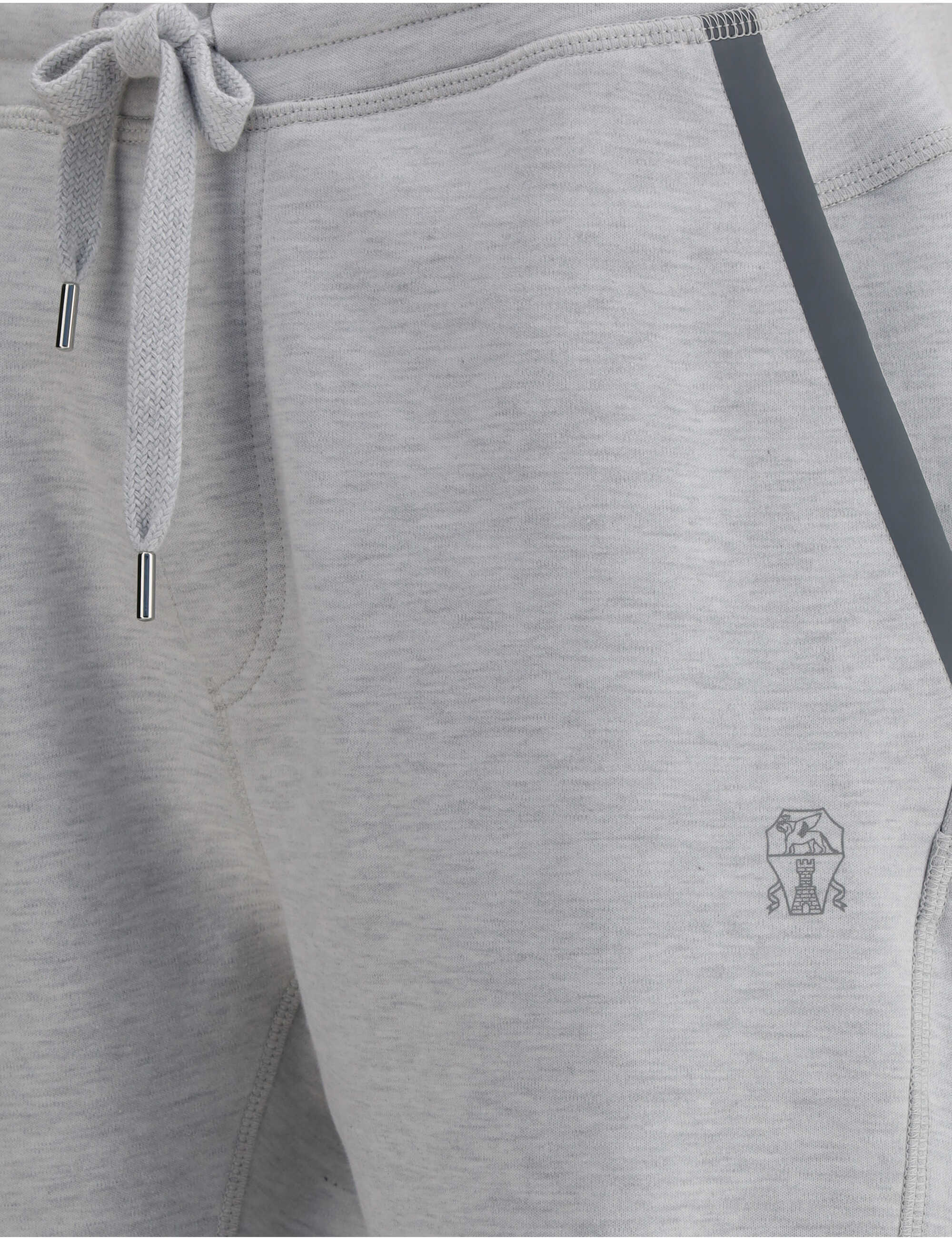 Brunello Cucinelli's cotton Sweatpants feature an elasticized drawstring waistband for a comfortable, adjustable fit. The two side welt pockets offer practicality, while the zippered breast pocket on the left side panel adds a touch of functionality and style. The iconic logo on the front completes the design, giving the garment a distinctive brand detail