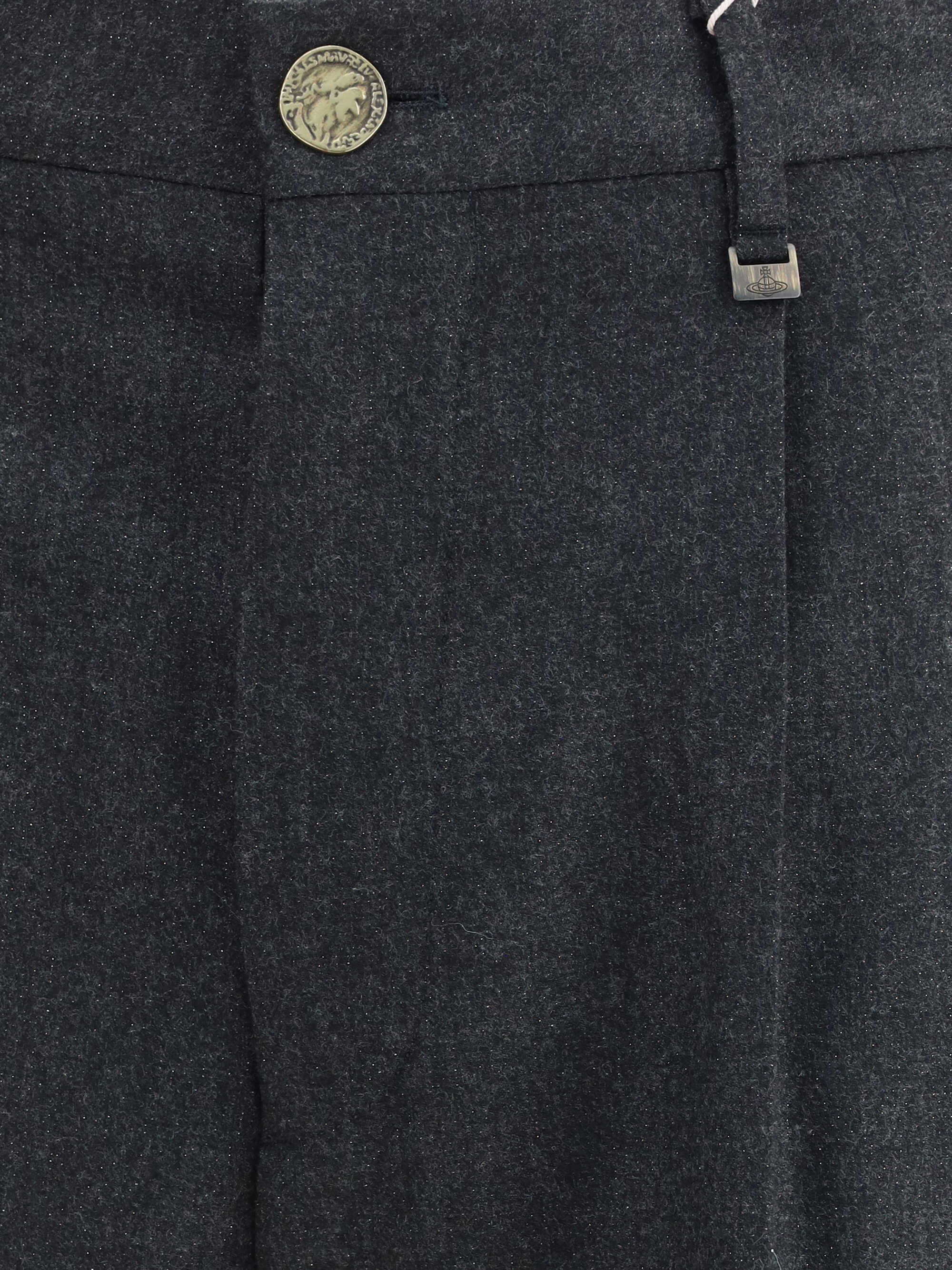 Vivienne Westwood's Rafael Pants are made of soft brushed wool with a stylish metallic finish. The high-waisted style features a band with belt loops, gold button and zipper closure. The wide leg is enhanced by refined ironed pleats, while side slit and back welt pockets complete the design with a tailored touch.