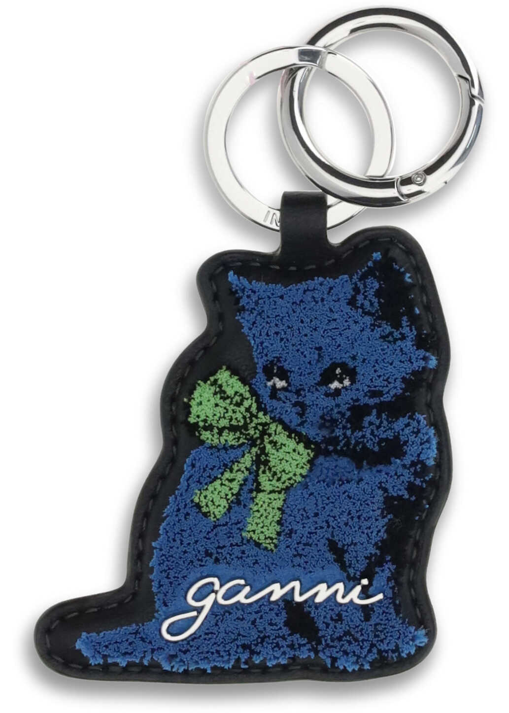 Ganni's Kitty Keyring is a fun and distinctive accessory that adds a touch of personality to everyday life. Made in the shape of a cat, it features a playful yet detailed design enhanced by the GANNI logo that underscores its affiliation with the famous Danish brand. Equipped with a silver-colored ring and clasp, it is practical to attach to keys, bags or backpacks, becoming a functional yet decorative element.