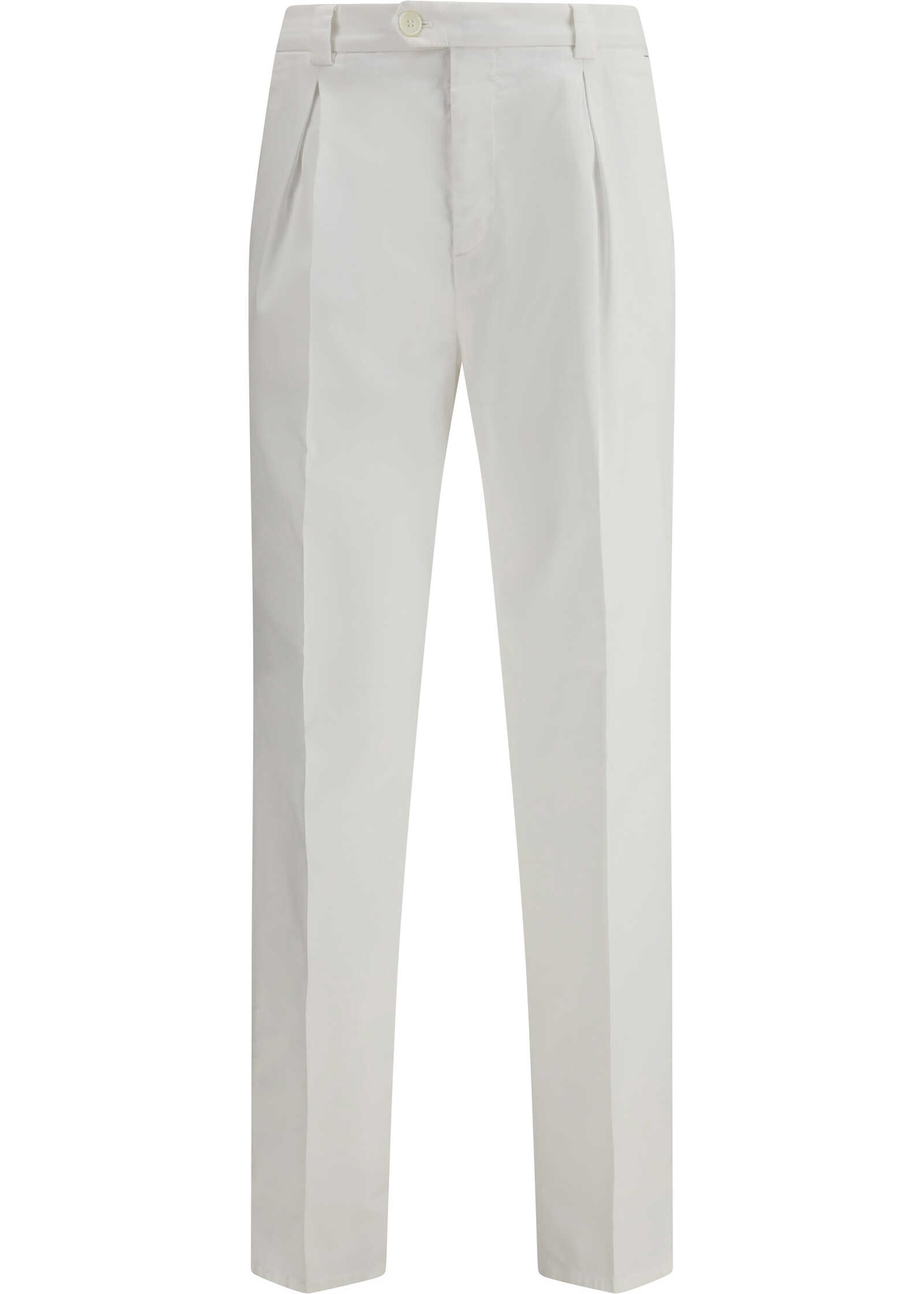 Brunello Cucinelli's cotton gabardine Pants combine sartorial elegance and functionality in a garment with a refined, contemporary style. The design features a zipper, button, metal hook-and-eye and counter-button closure for a secure and comfortable fit. American-style front pockets, darts and back welt pockets define a classic, well-structured silhouette. A distinctive detail is the practical applied tee holder on the leg, while the plain bottom completes the essential and versatile look.