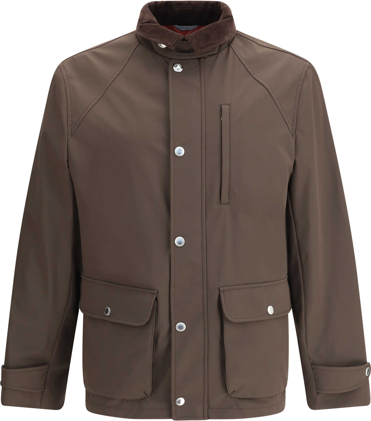 Brunello Cucinelli's stretch membrane nylon Jacket combines elegance and functionality in a garment with a refined aesthetic and technical cut. The design is enhanced by a double zipper and snap closure, while the shirt-style collar with chin strap adds a touch of character. The cupro lining ensures comfort and breathability. Complete with a zippered high pocket, low flap and button pockets, two inside button pockets and a pen pocket, it is designed to offer practicality and organization without sacrificing style. Snap-button cuffs finish the look with discretion and attention to detail.