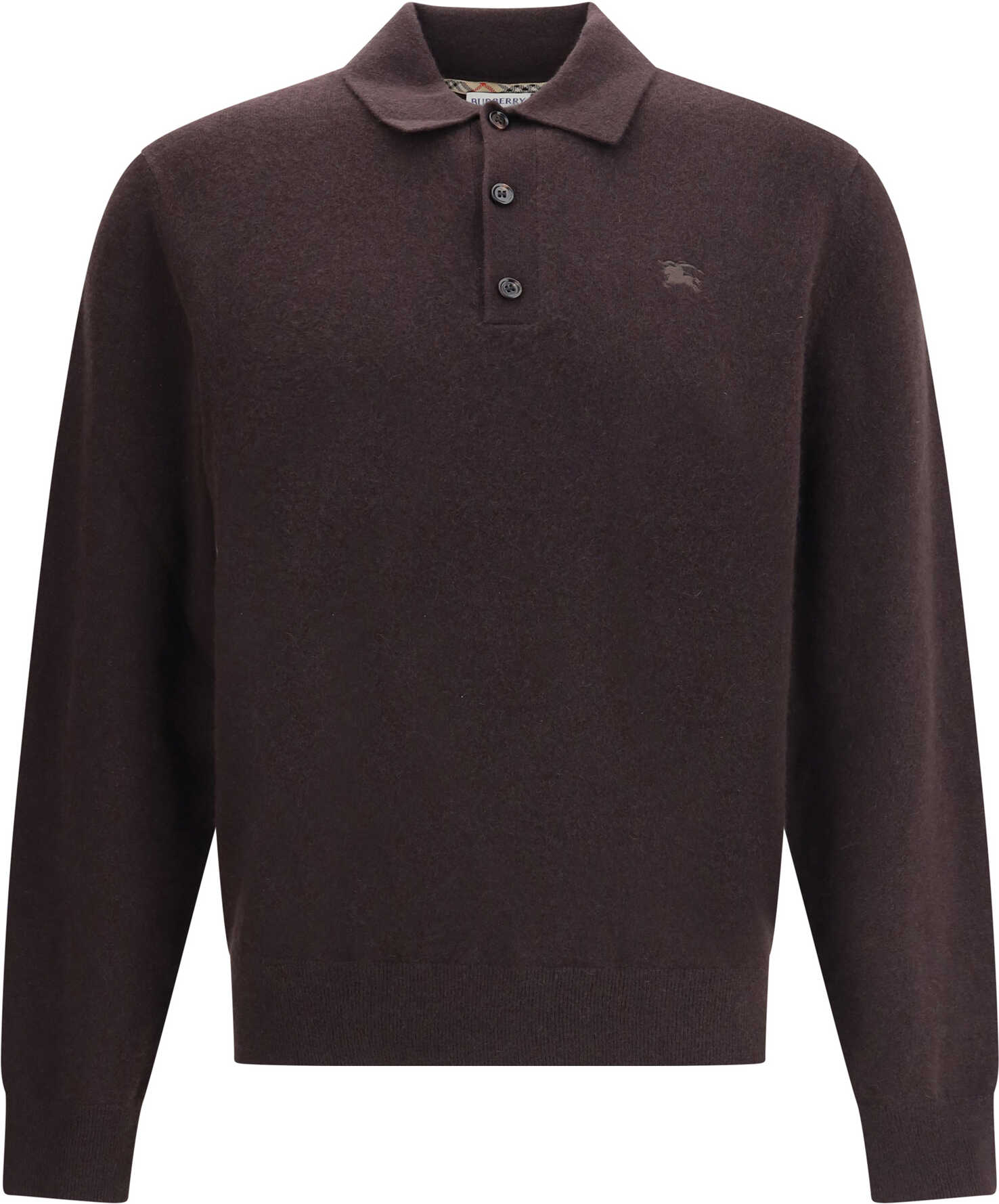 Burberry's cashmere long-sleeved polo sweater is a garment that combines the softness of fine yarn with the house's iconic details. Made from pure cashmere, it offers a comfortable fit and a luxurious feel against the skin. The design features a classic button placket and ribbed trim on the collar, cuffs and hem for a defined yet relaxed silhouette. The embroidered Equestrian Knight Design, Burberry's historic symbol, stands out on the chest, adding a distinctive and refined touch. A versatile and timeless garment, perfect for everyday elegance.
