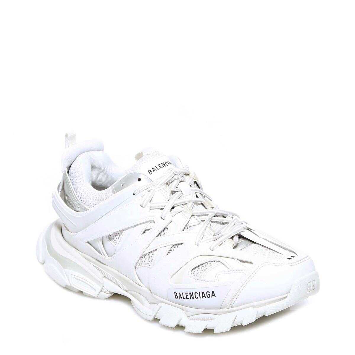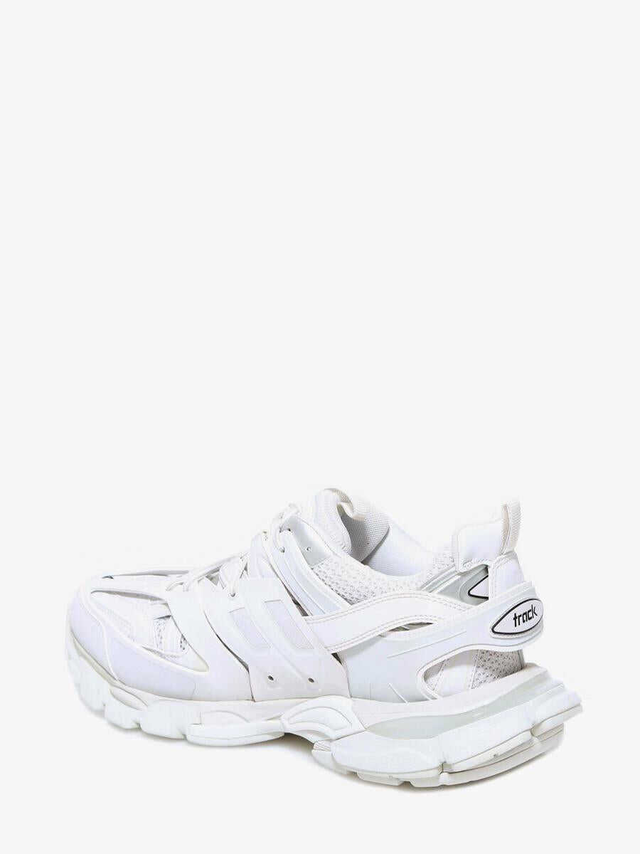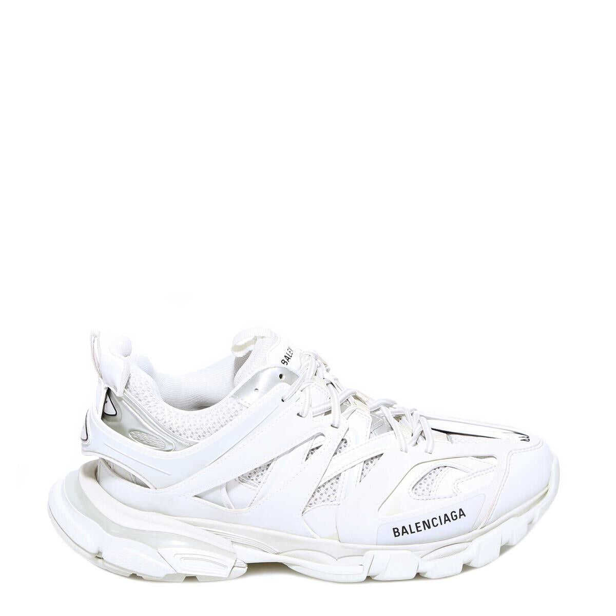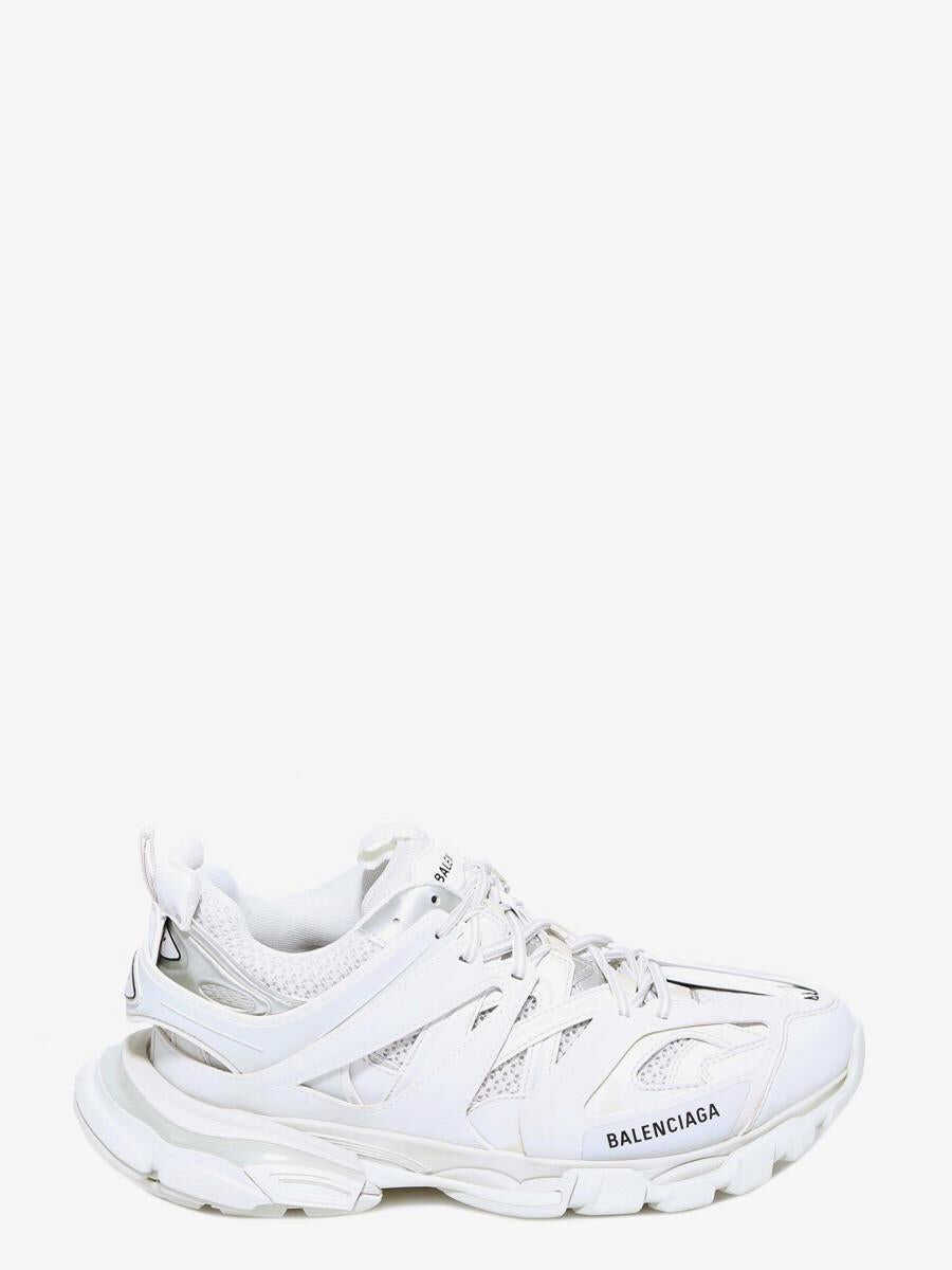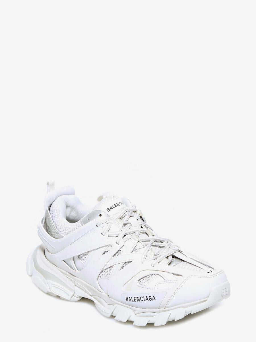 TRACK SNEAKERS BY BALENCIAGA, INSPIRED BY HIGH TECH RUNNING SHOE DESIGN, MULTI LAYER UPPER, DRAWSTRING STYLE LACE-UP CLOSURE ON FRONT, SIZE NUMBER EMBROIDERED ON FRONT, WORN EFFECT, LOGO PRINTED ON SIDE, REINFORCED SOLE, LOGO ON SOLE AND INSOLE.