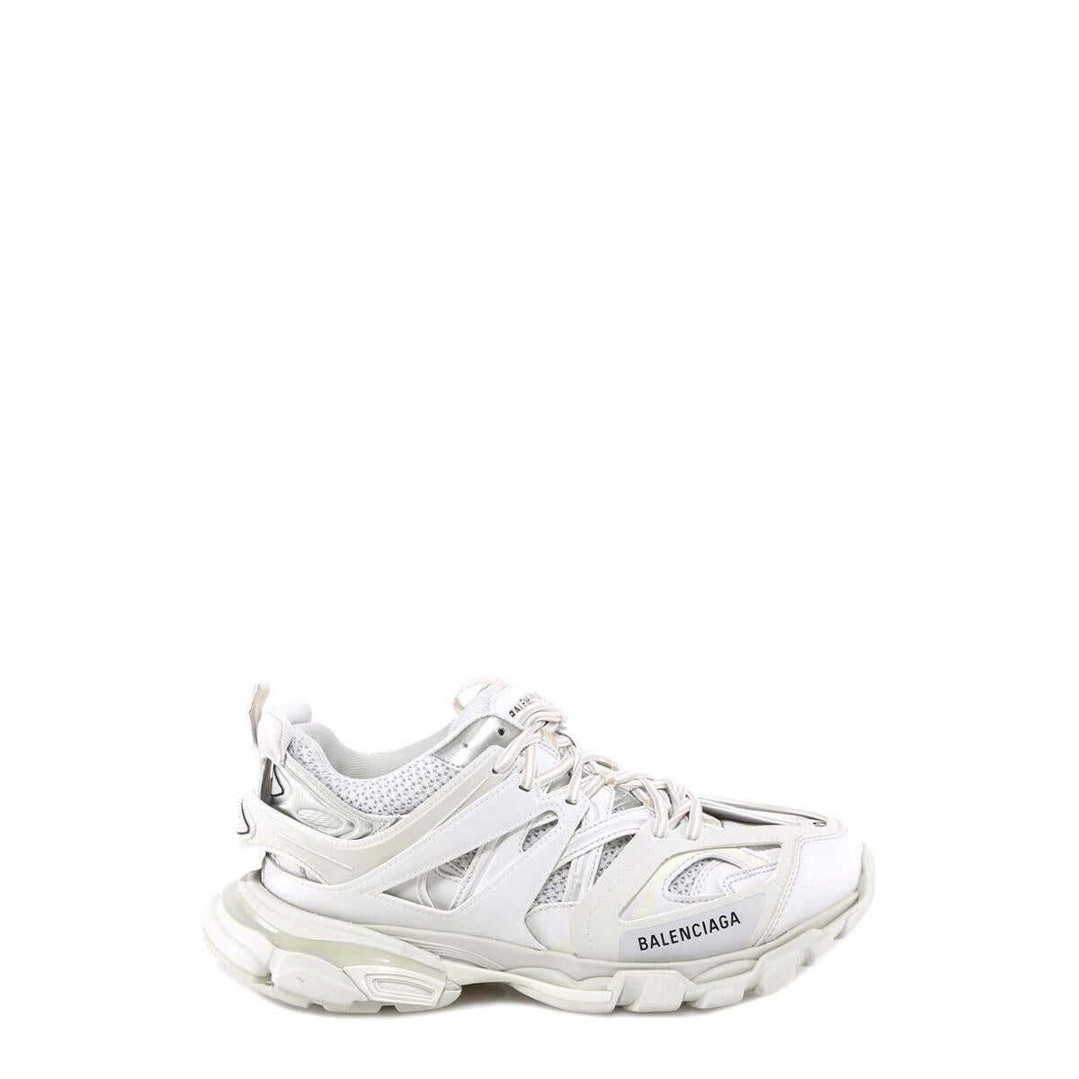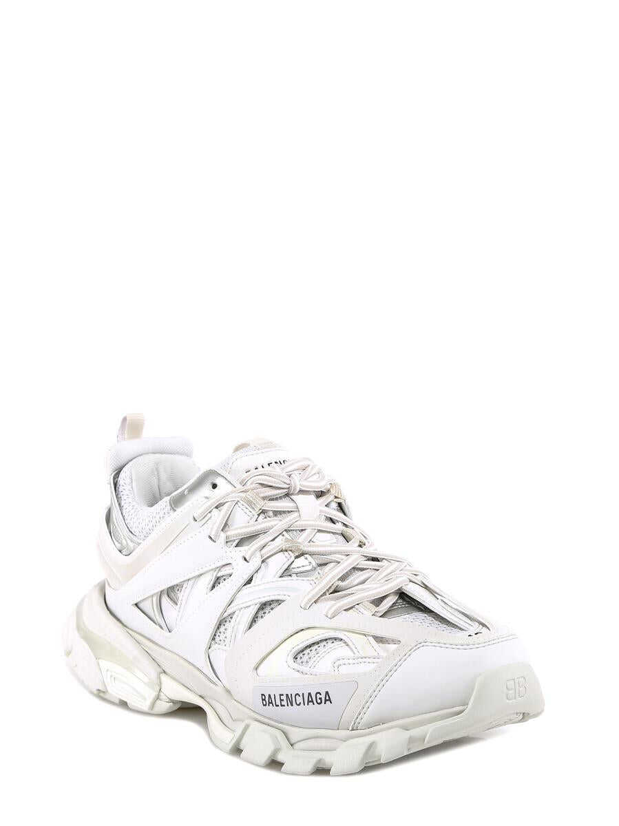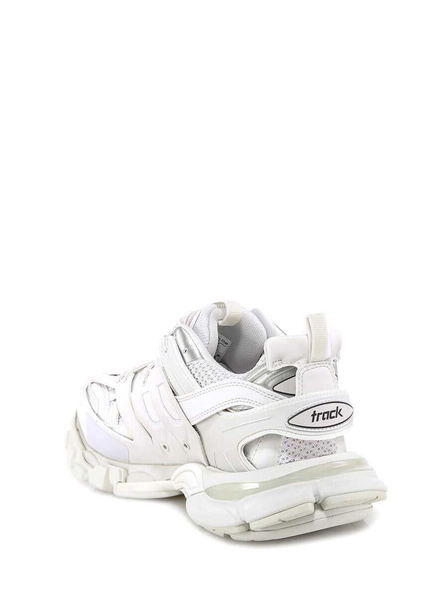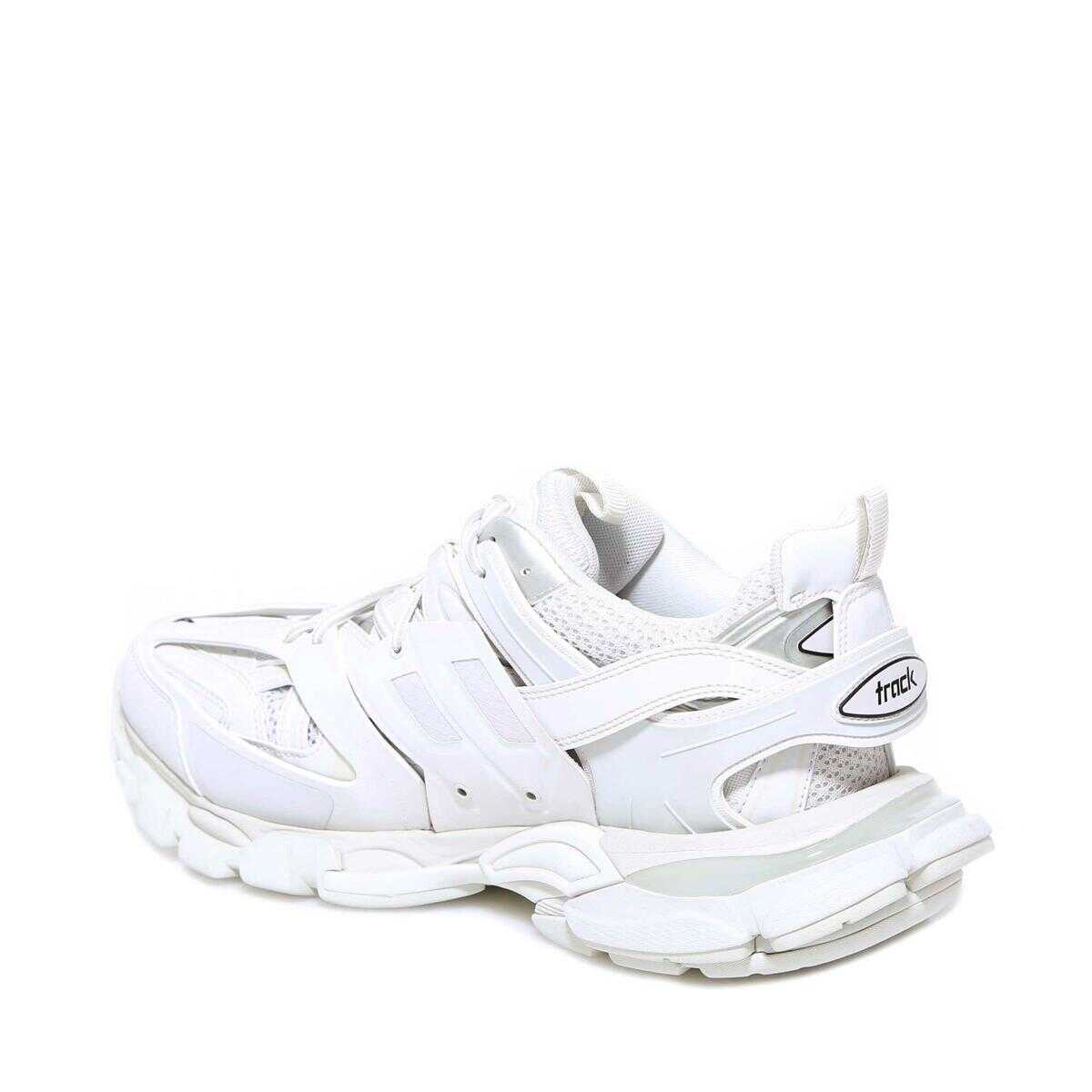 TRACK SNEAKERS BY BALENCIAGA, INSPIRED BY HIGH TECH RUNNING SHOE DESIGN, MULTI LAYER UPPER, DRAWSTRING STYLE LACE-UP CLOSURE ON FRONT, SIZE NUMBER EMBROIDERED ON FRONT, WORN EFFECT, LOGO PRINTED ON SIDE, REINFORCED SOLE, LOGO ON SOLE AND INSOLE.