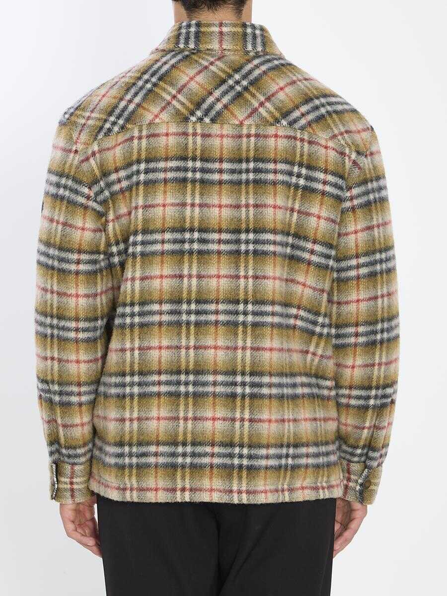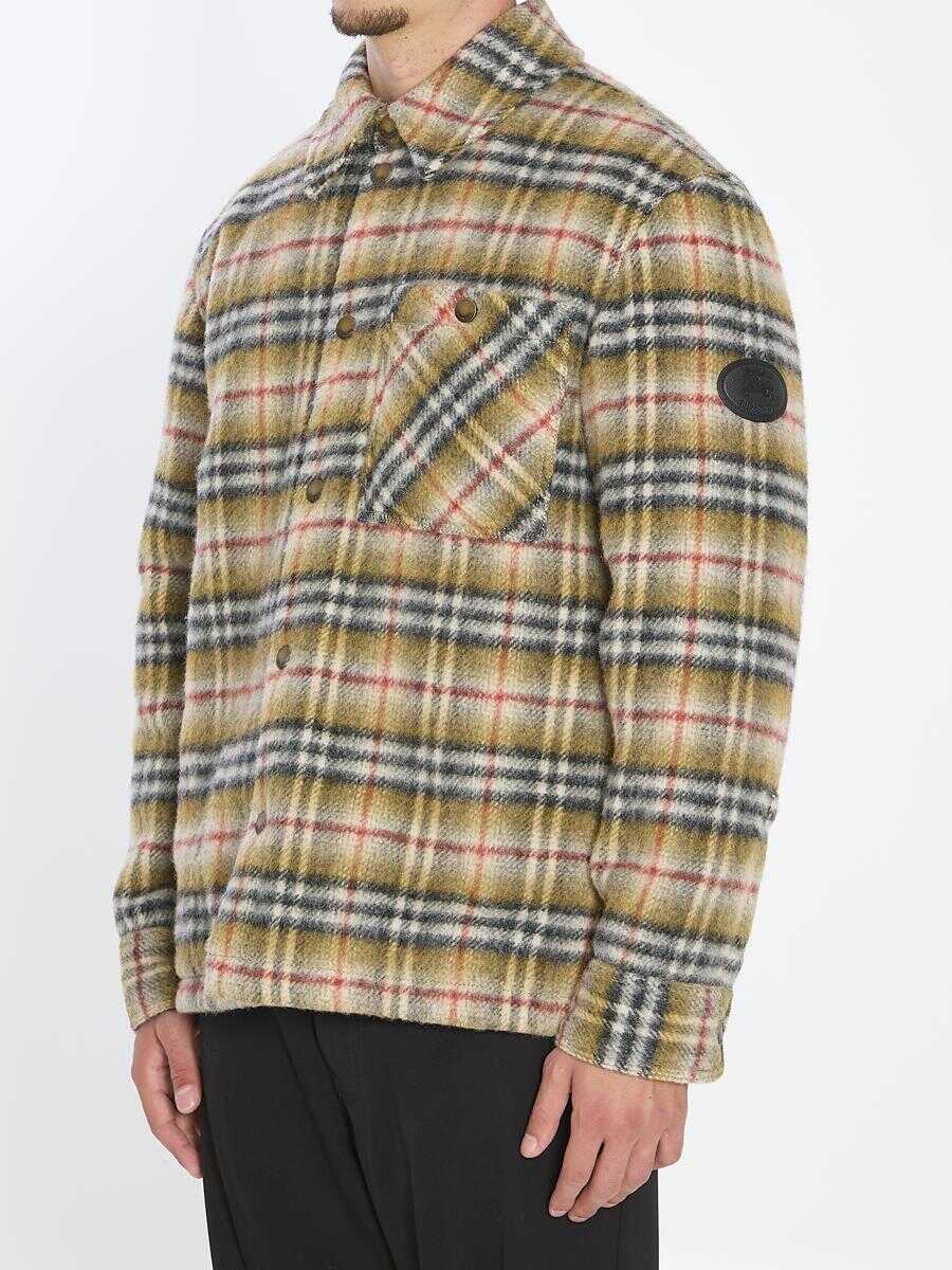 Padded overshirt jacket in felted wool with all-over Check pattern in beige. Features a pointed collar, front closure with branded buttons, chest patch pocket with button, buttoned cuffs, hem with small side slits, logo patch on the left sleeve, and quilted nylon lining. Regular fit.