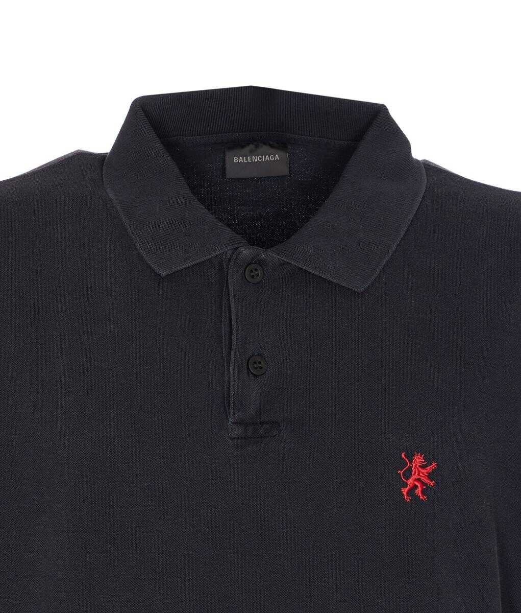 Balenciaga Washed Black Stardan Polo, Regular Collar, Buttons Closure, Embroidered, Short Sleeves, US SIZE