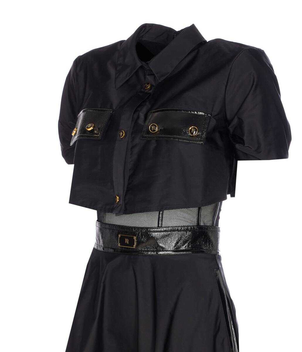 Elisabetta Franchi Black Long Dress, Zip And Hook Closure On The Back, Transparent Detail, Crop Shirt With Buttons Closure, Short Sleeves, Regular Collar, Lateral Pockets, Long Skirt, Patch Logo On The Front, EU SIZE (IT)
