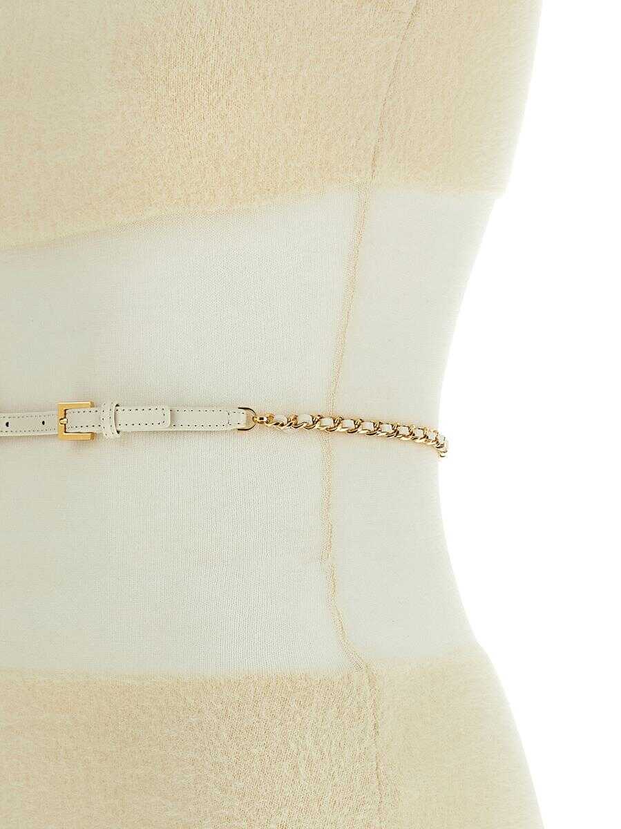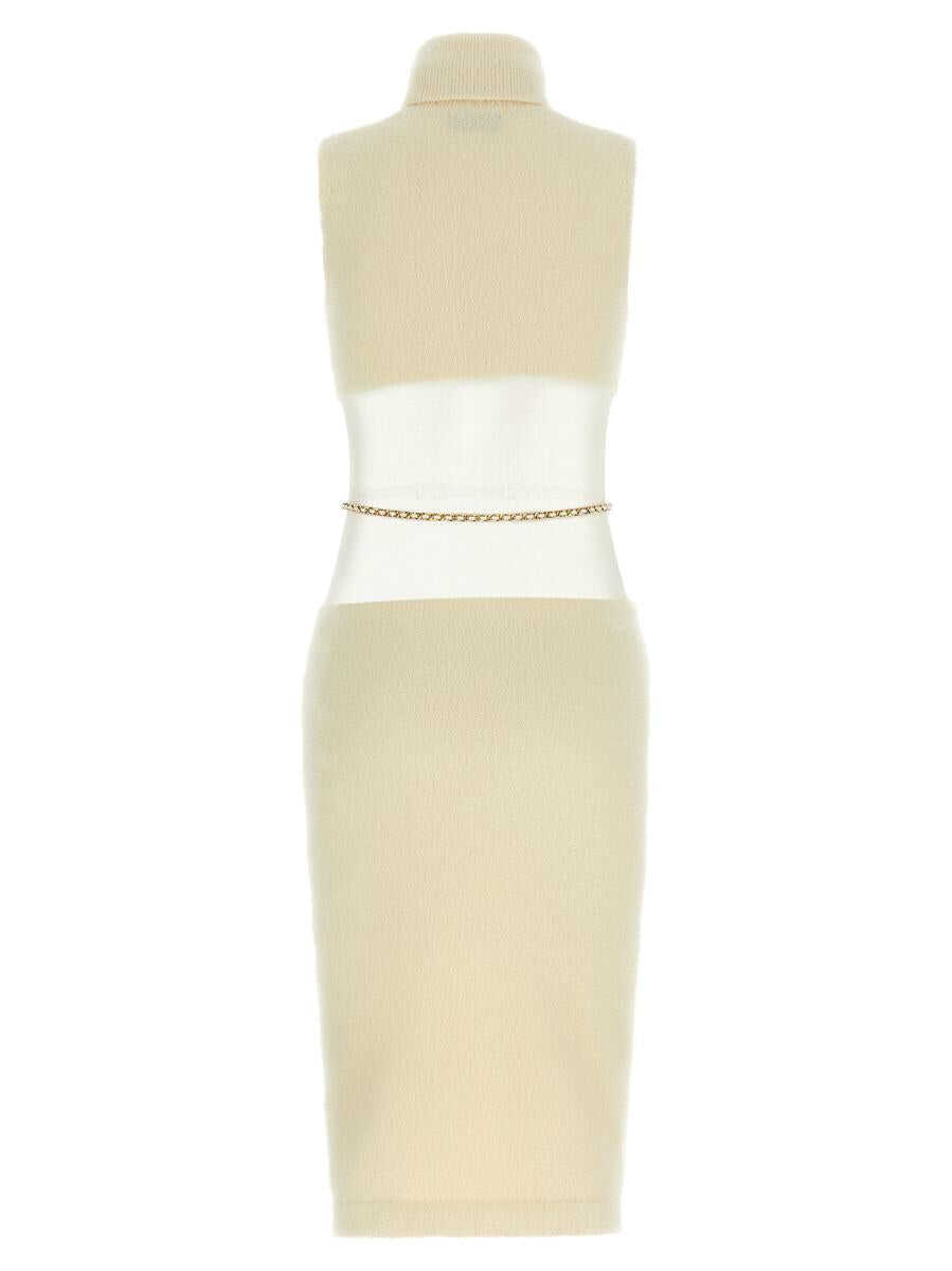 Fur-effect stretch knit midi dress with semi-transparent gauze insert at the waist, sleeveless turtleneck neck, longuette skirt, removable belt