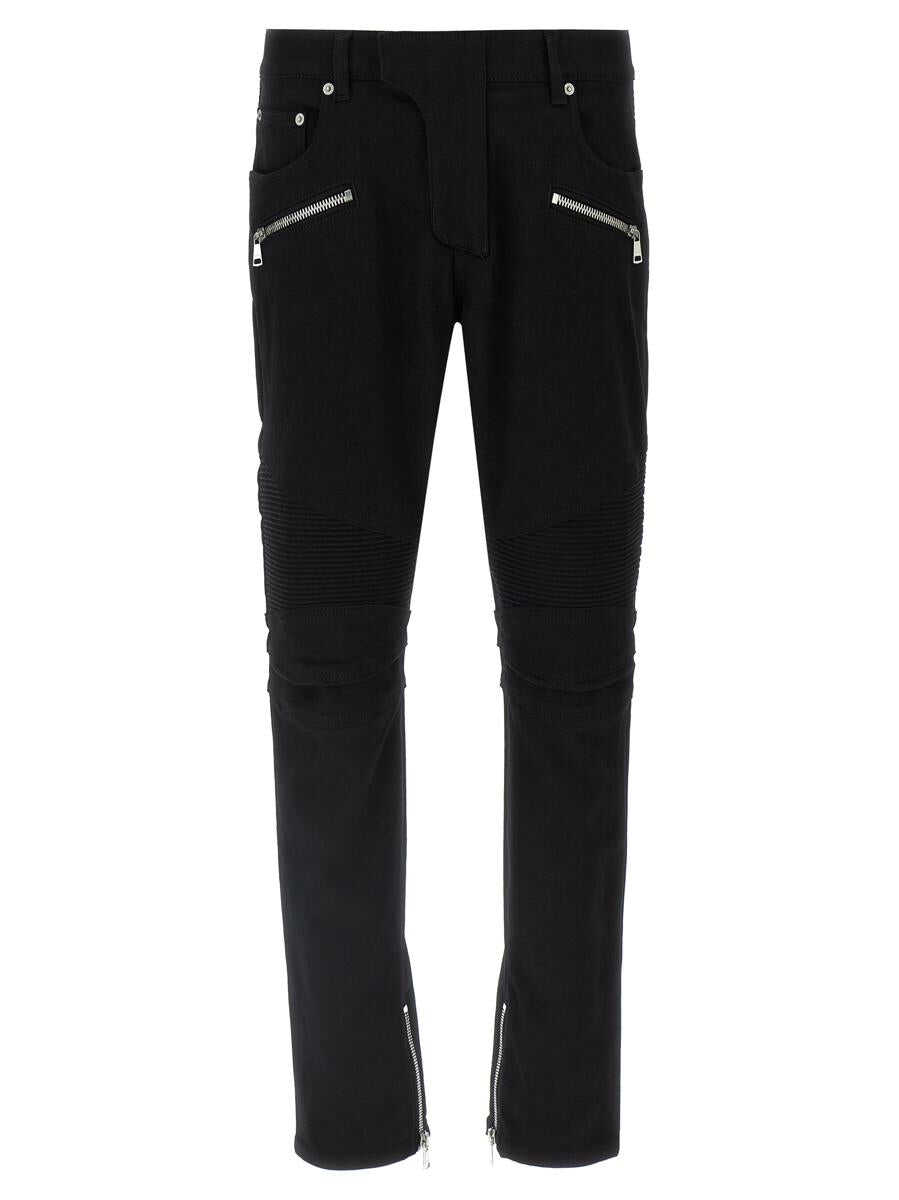 Biker' cotton denim jeans with ribbed details, straight leg, zip and snap button closure, five pockets, zip at the bottom of the leg, back logo tag