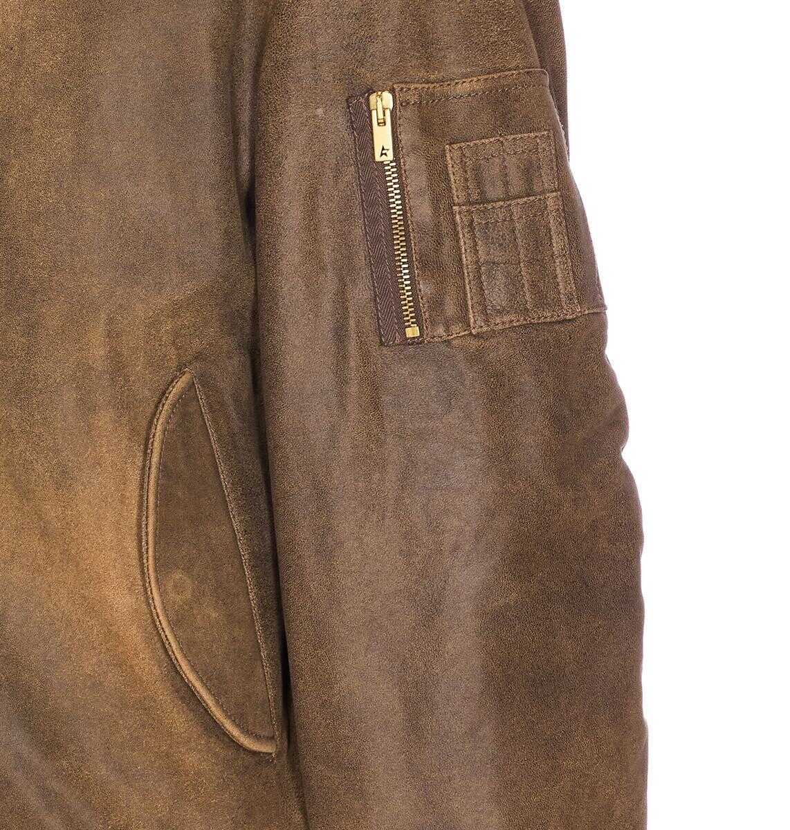 Golden Goose French Roast Journey Lamb Leather Jacket With Frontal Zip Closure, Knitted Crewneck, Long Sleeves, Cuffs And On Waist, Pockets, US SIZE
