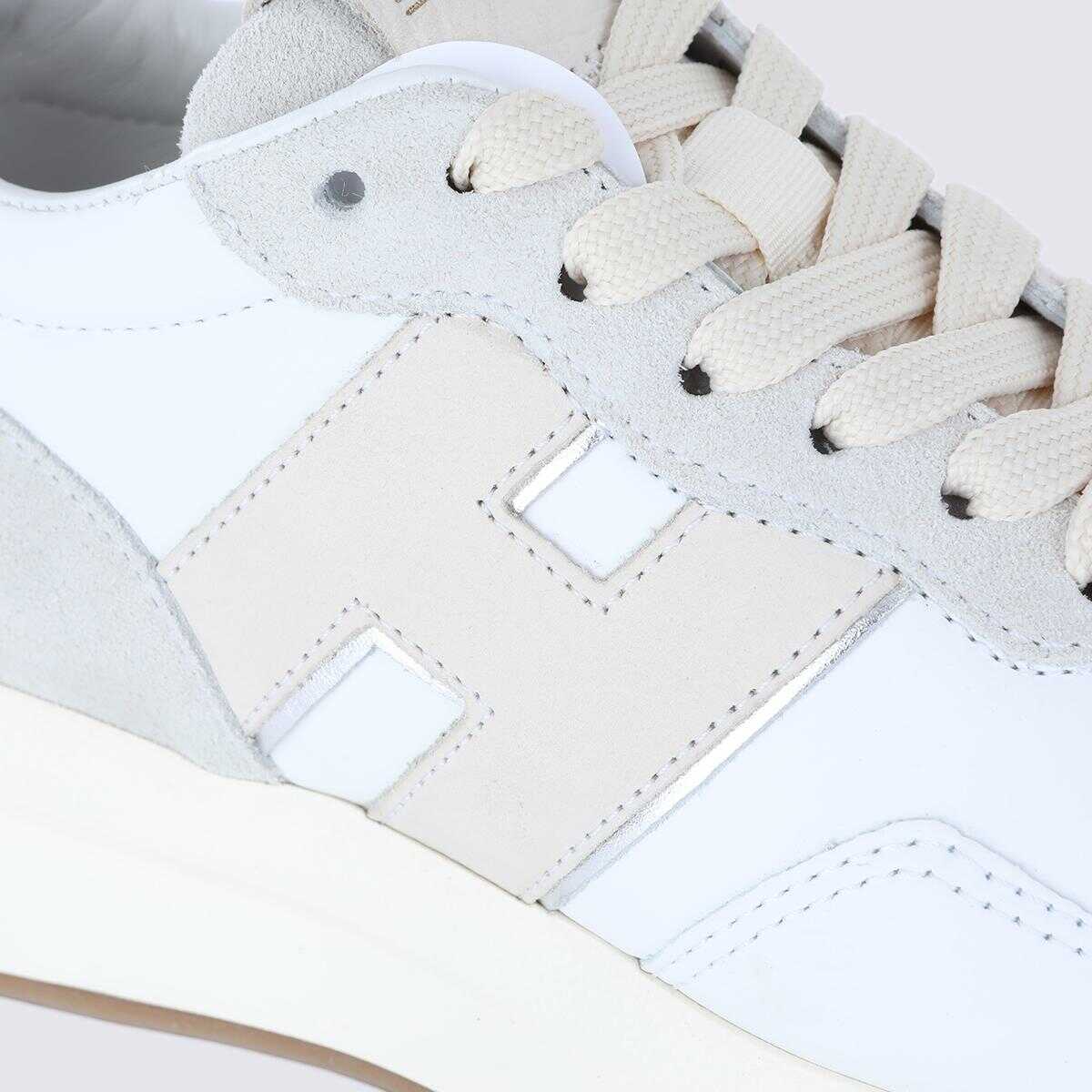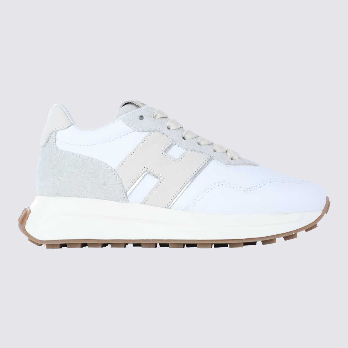White leather sneakers from Hogan featuring round toe, laces fastening, lateral monogram logo, branded tongue and rubber sole.