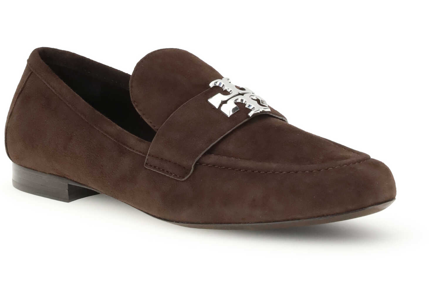 The Eleanor Loafers by Tory Burch are crafted from soft suede and feature the signature double T silver-tone hardware, an iconic brand detail. Elegant and refined, they combine classic style and comfort, making them perfect for both casual looks and more polished outfits. Their clean silhouette and meticulous finishing make them a versatile, chic accessory for everyday wear.