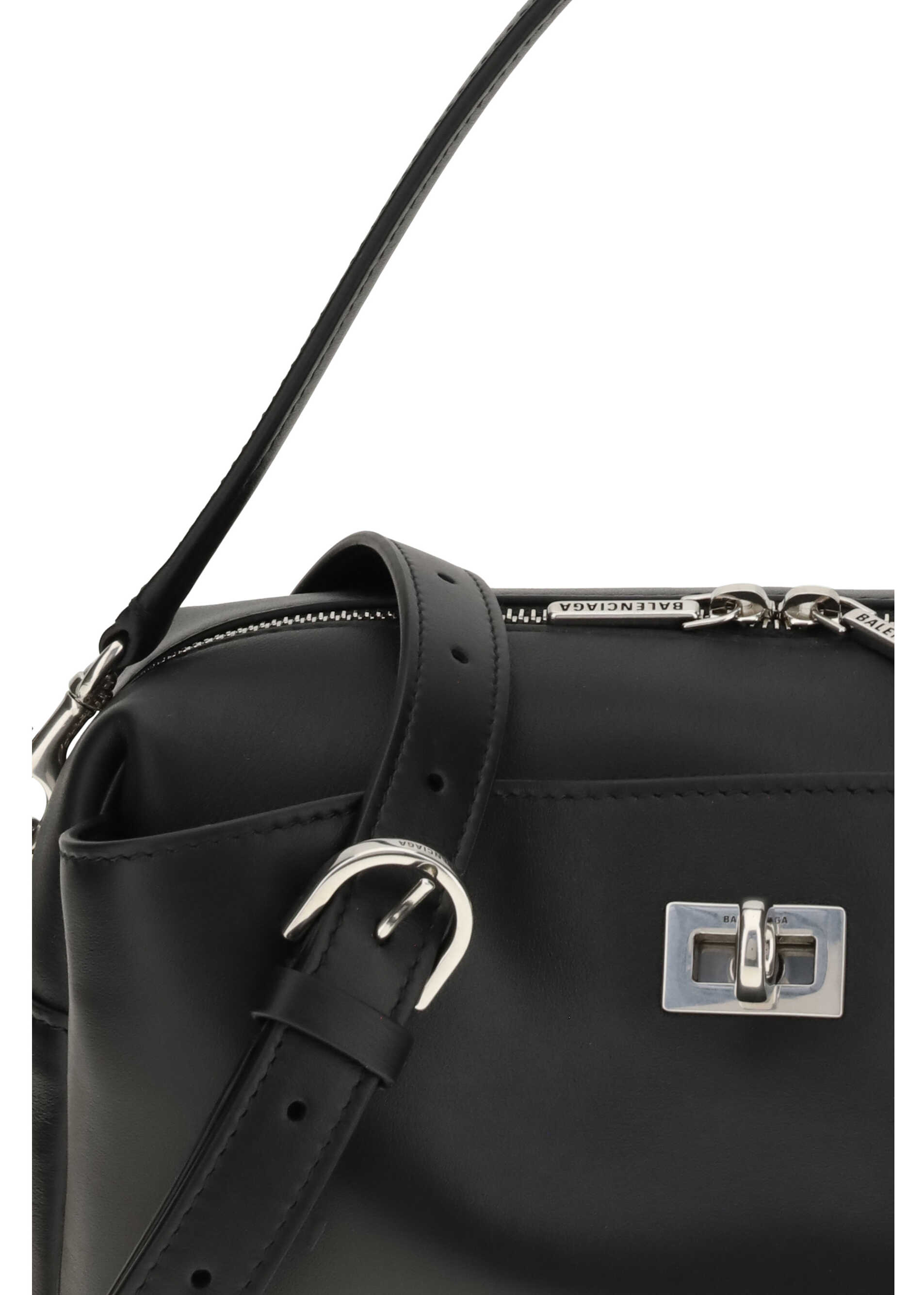 The Rodeo Camera Bag by Balenciaga is crafted from smooth black calf leather with antique silver-tone hardware. Versatile and practical, it can be worn crossbody, over the shoulder, or by hand, thanks to the removable handle and adjustable, removable shoulder strap. It features a front pocket with turn-lock closure, engraved logo, top zip, main compartment, one internal flat pocket, and two rear flat pockets. The lamb nappa lining completes the elegant and functional design.