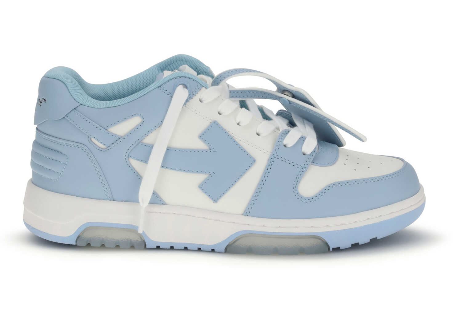 The Out of Office Sneakers by Off-White feature a perforated round toe that offers breathability and comfort. The flat sole provides stability, while the iconic embossed Arrow logo on the side panel adds a distinctive touch to the design. The logo-embossed front lace-up closure allows for a customized fit, and the brand's iconic signature is pressure-printed on the back label, accentuating the brand connection. Finally, the iconic zipper tie tag applied to the front laces completes the bold and recognizable look of these sneakers.