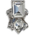 The McQueen Cocktail Ring in palladium finish is adorned with large transparent crystals in pear and emerald cuts. The brass metal parts feature the McQueen logo engraved on the back.