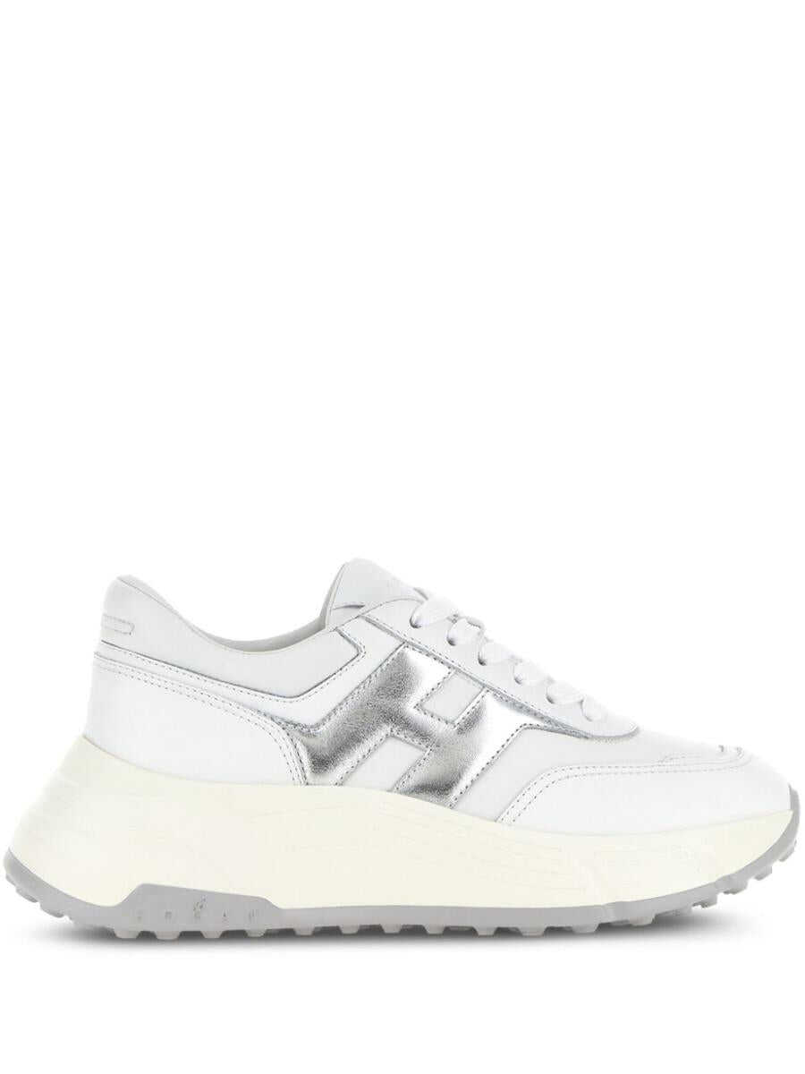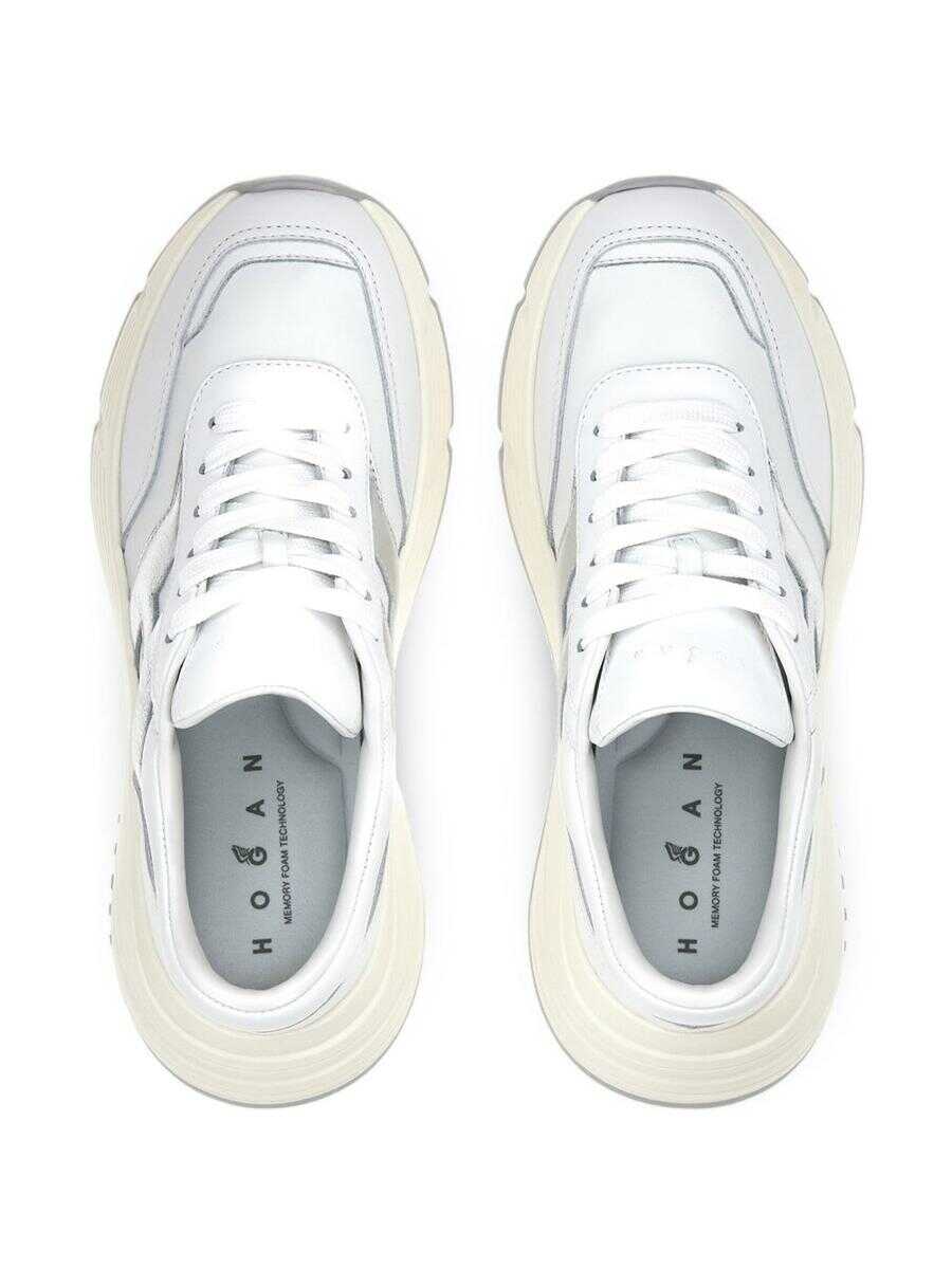 white leather front lace-up fastening logo-embellished side panels logo-embossed tongue branded insole rubber sole round toe