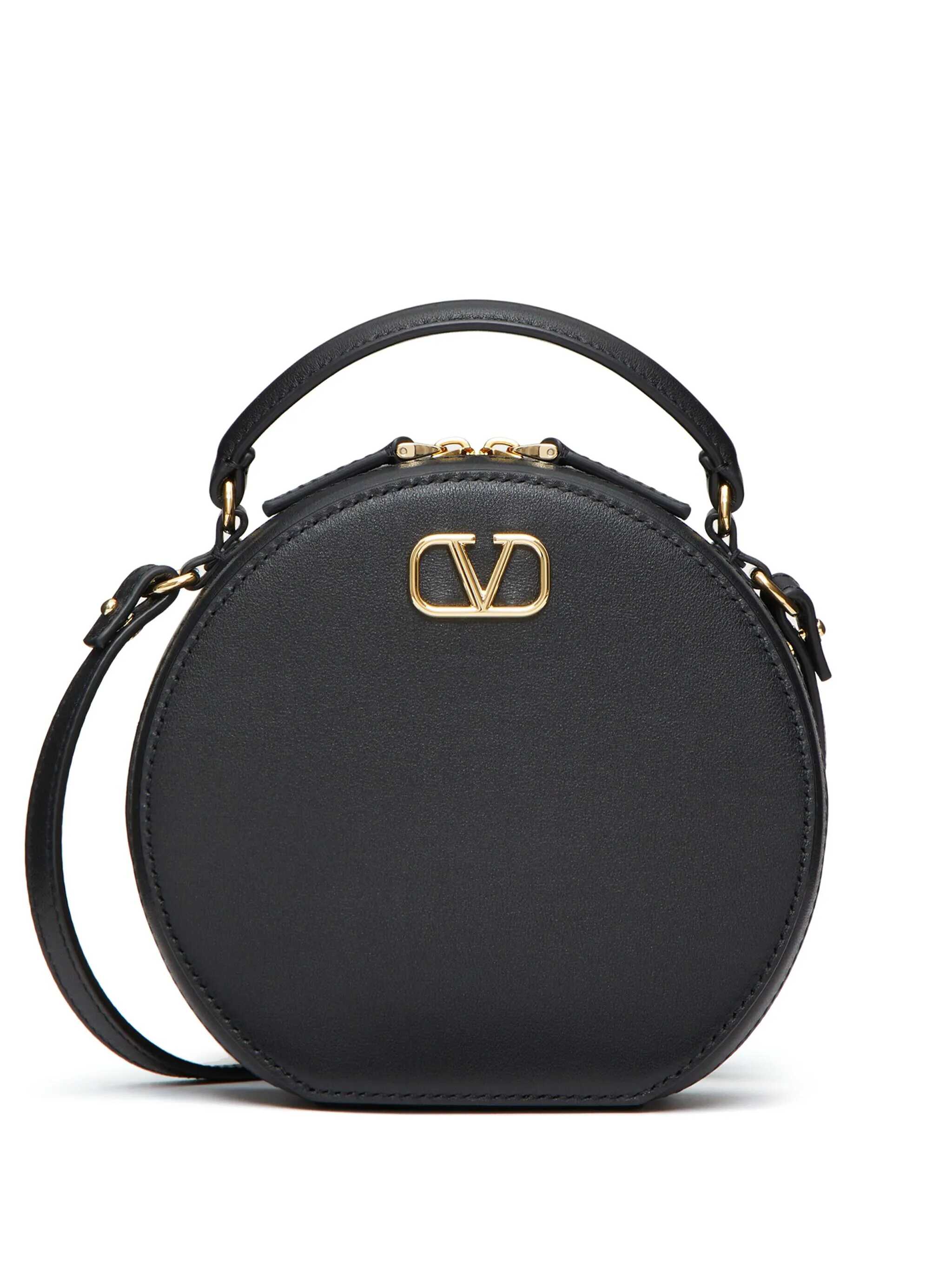 black calf leather VLogo Signature gold-tone hardware adjustable detachable shoulder strap single top handle two-way zip fastening main compartment internal card slots
