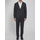 Two-piece suit in anthracite grey virgin wool and silk. The single-breasted jacket features classic lapels with a pin on the collar, front button closure, two open front pockets, a welt chest pocket, and buttoned cuffs. The trousers have a straight-leg cut, zip and button closure, two side pockets, two back welt pockets with button, and belt loops. Regular fit.