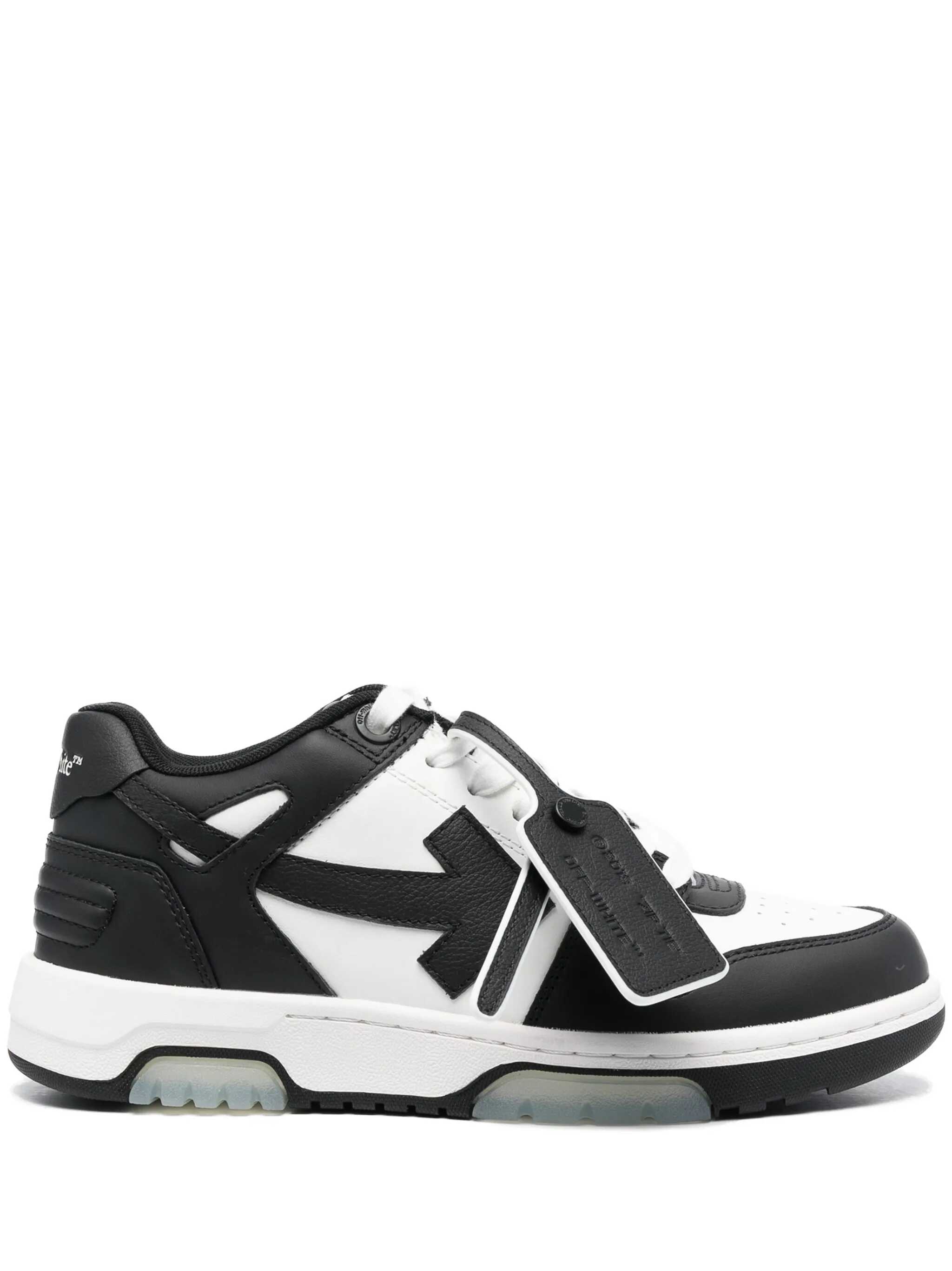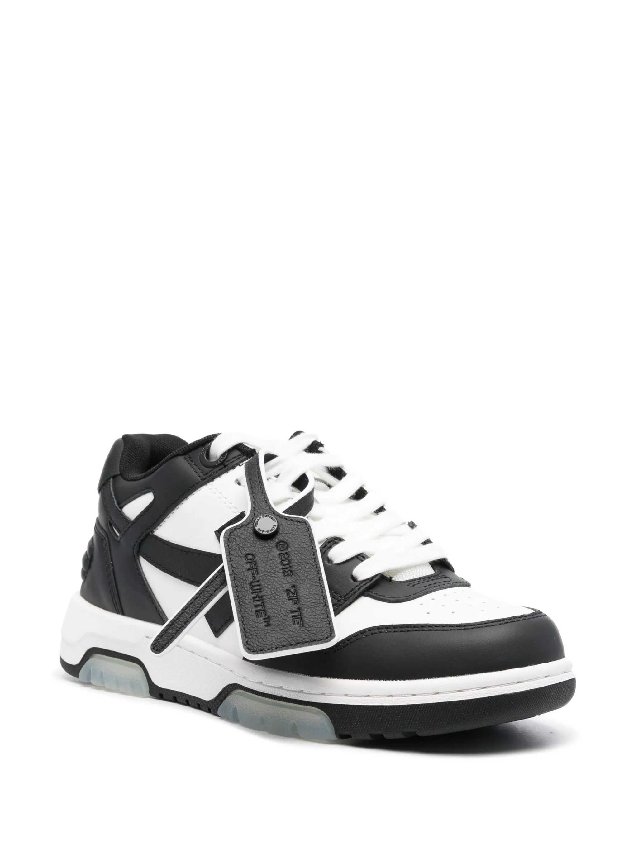 black/white leather signature Zip Tie tag signature Arrows motif panelled design front lace-up fastening round toe flat rubber sole Due to the dyeing process used, this product must not come into contact with water.