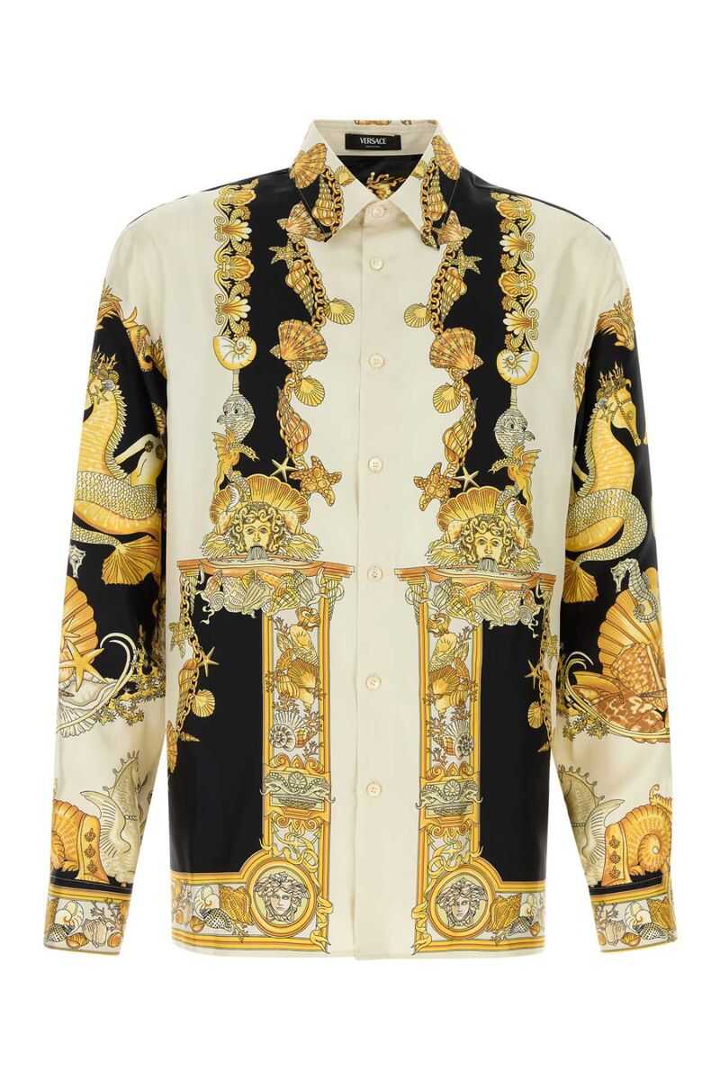 All-over 'Coral Theatre' print silk twill shirt, front button closure, long cuffed sleeves