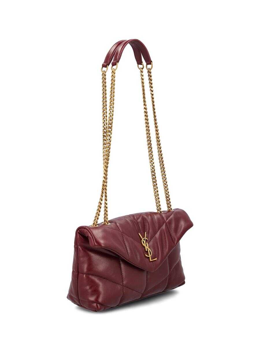 The Puffer Toy model reinterprets the classic "puffer" effect in a couture key: made of shiny lambskin with elegant chevron stitching, this mini bag conveys a contemporary and sophisticated aura. The sliding chain strap makes versatile styling wearable on the shoulder or cross-body while clear metal details complete the look with refined accents. A must-have accessory for those who love to combine practicality and understated luxury. - Material: 100% lambskin - Color: red - Interior: one zipper pocket, two card slots - Grosgrain lining - Bronze-colored metal parts - Automatic magnetic closure - Ysl logo appliqué on front - Sliding chain shoulder strap - Made in Italy - Dust bag - Item number: 759337AAFFA6593