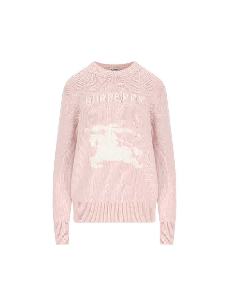 Burberry pullover made of soft wool and cashmere, embellished with the embroidery of the Equestrian Knight Design (EKD) monogram that recalls the heritage of the maison. The classic line with crew neck and long sleeves is enriched with refined details, making this model an iconic and versatile garment, perfect for discreet and contemporary elegance. - Material: 71% wool, 29% cashmere - Color: pink - Finish: 70% wool, 28% cashmere, 1% elastane, 1% polyamide - Equestrian Knight Design appliqué on front - Made in Italy - Item code: 8115641C2989