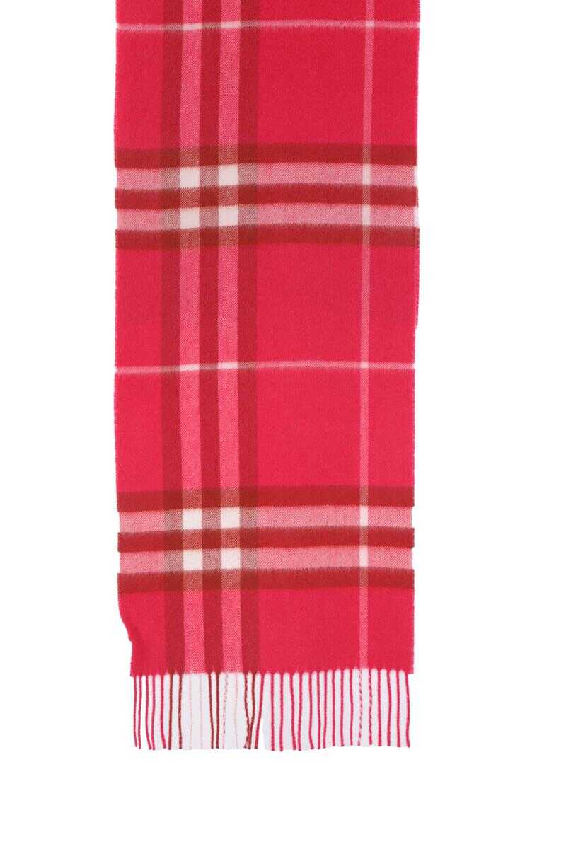 Burberry scarf crafted from cashmere in fuchsia Giant Check pattern. Featuring fringed ends on both sides.