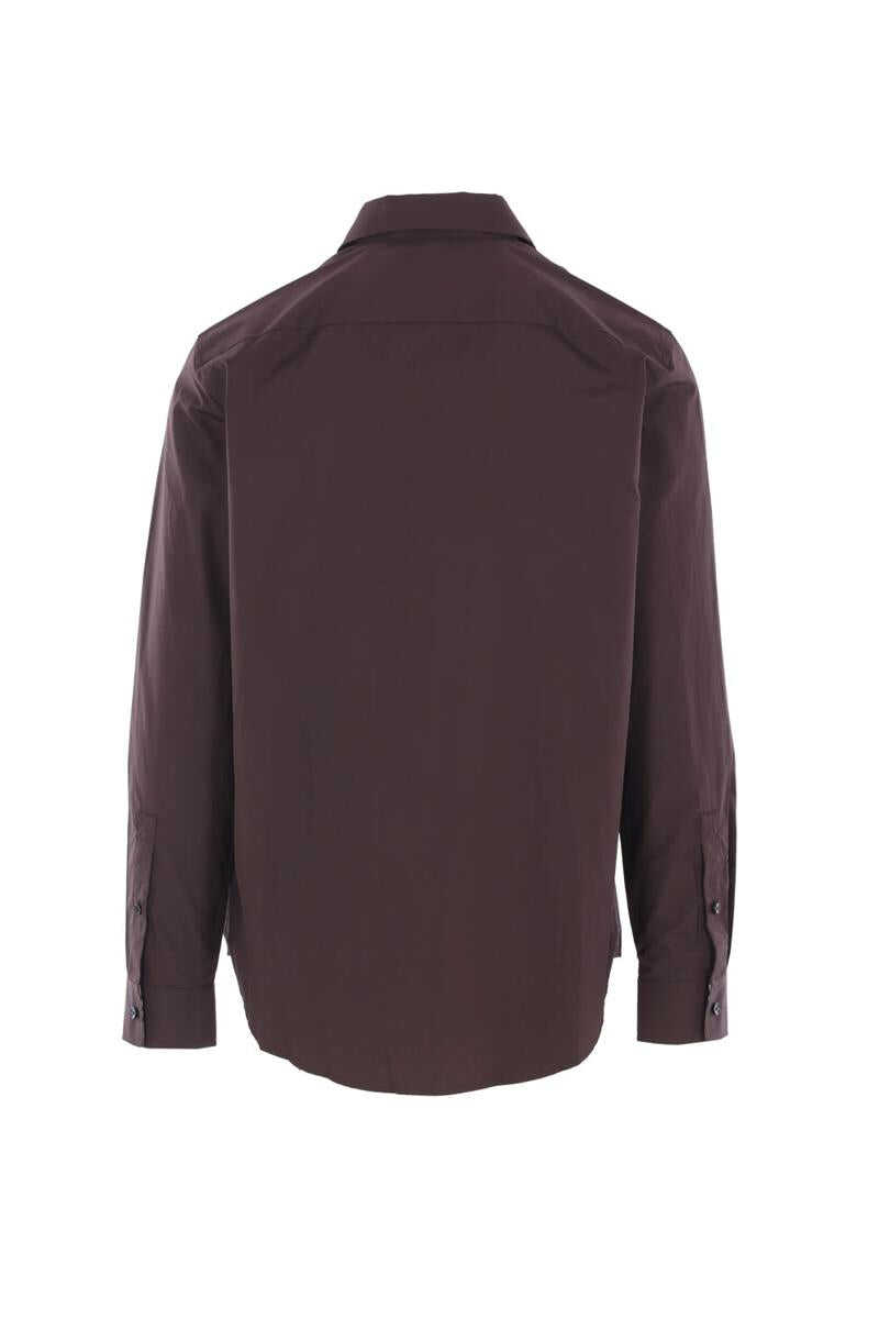 Burberry shirt made of dark brown cotton poplin with Burberry Check lining on the collar and cuffs. Featuring a classic collar, front button closure, long sleeves with buttoned cuffs, and a rounded hem. The design is completed with the embroidered Equestrian Knight logo on the chest.