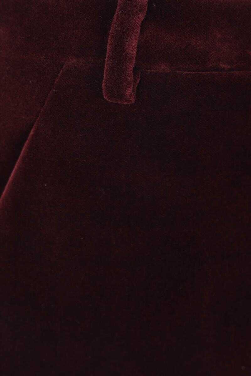 Saint Laurent midi skirt crafted from burgundy cotton velvet. Featuring a wrap-style closure with hook and button, belt loops, slanted pockets, and a fully lined interior.