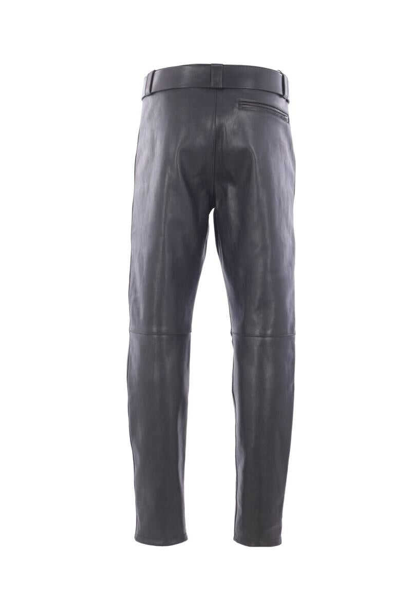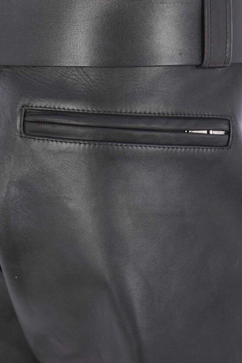 Saint Laurent trousers crafted from black leather with a matching belt. Featuring snap-button and zip closure, belt loops, zip pockets, and a fully lined interior.
