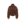 Balenciaga cropped padded jacket crafted from brown faux fur. Featuring a high collar, front zip fastening, welt pockets, long sleeves, and ribbed knit trims. Quilted interior.