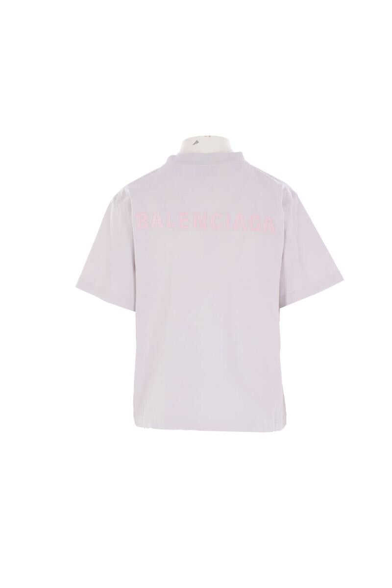 Balenciaga t-shirt crafted from ice-colored cotton jersey with Balenciaga Back embroidery on the chest and back. Featuring a crew neckline, short sleeves, and a straight hem.