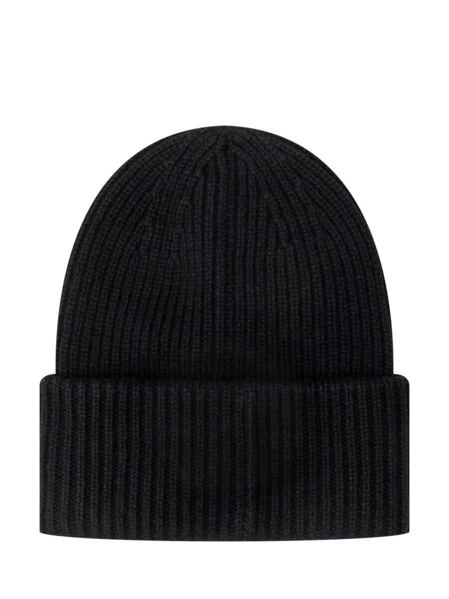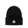 Pure blue ribbed wool Moncler hat with lapels and front logo patch.
