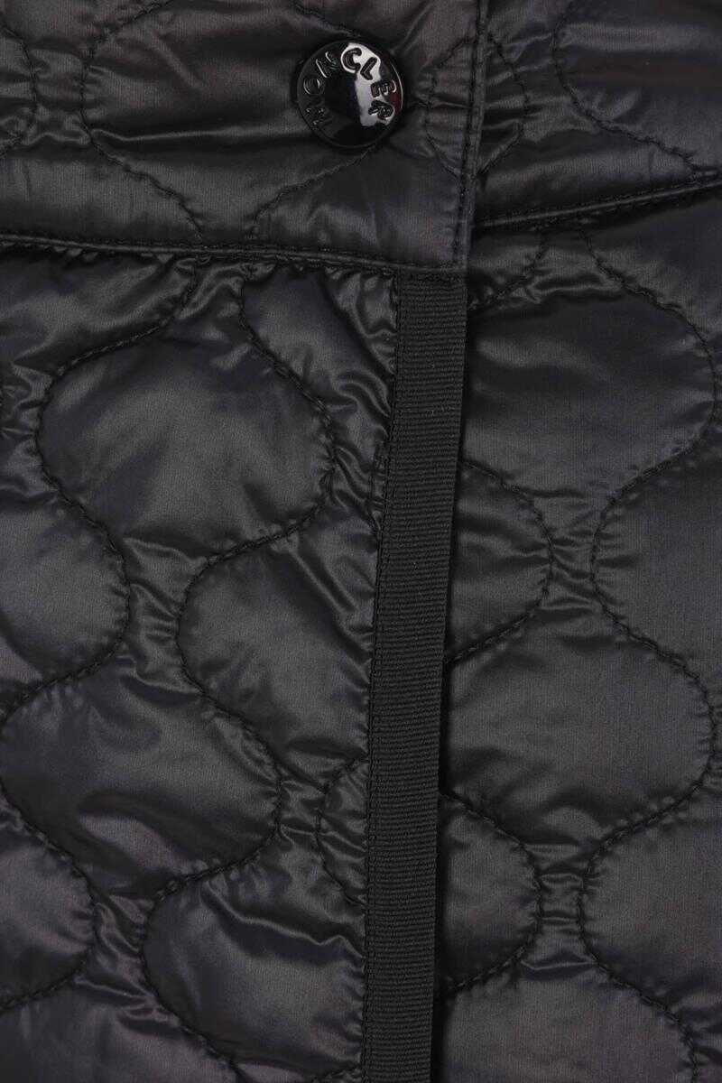 Moncler mini skirt made of black quilted nylon. Features a wrap-style snap button closure and a front logo patch.