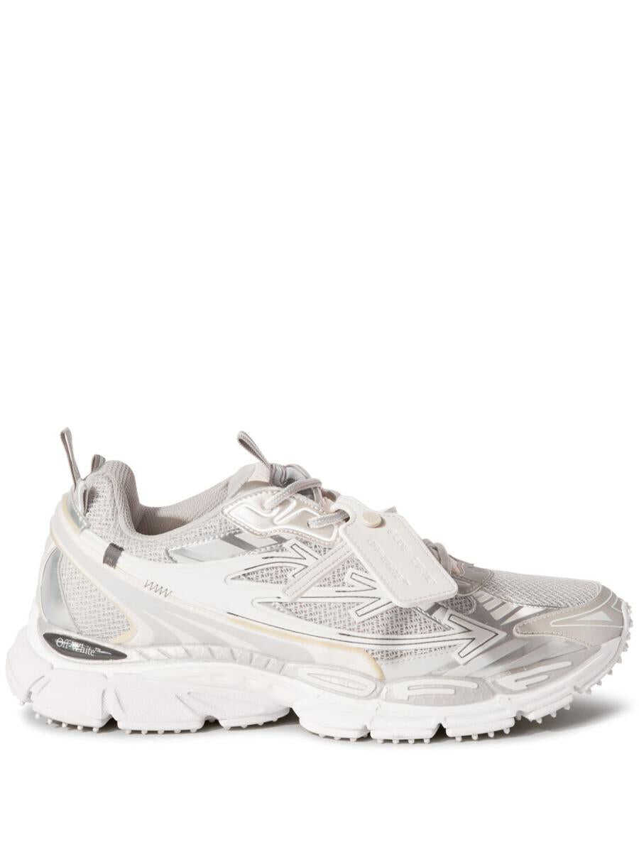 light grey/white/silver-tone mesh design logo patch at the tongue signature Zip Tie tag signature Arrows motif faux-leather trim round toe front lace-up fastening pull-tab at the tongue and heel branded insole rubber outsole