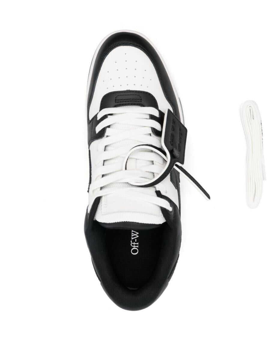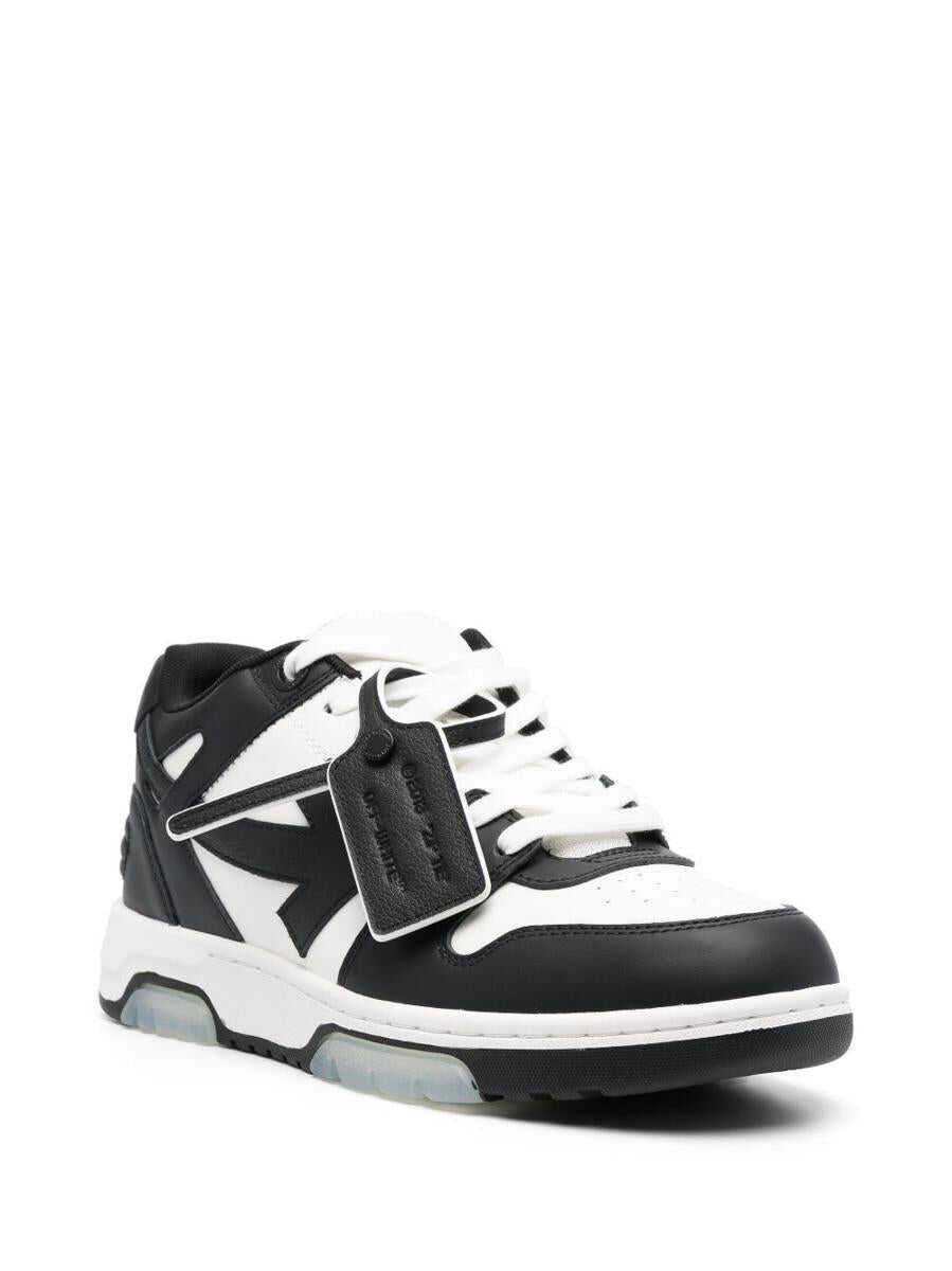 black/white leather signature Arrows motif signature Zip Tie tag panelled design front lace-up fastening round toe flat rubber sole Due to the dyeing process used, this product must not come into contact with water.
