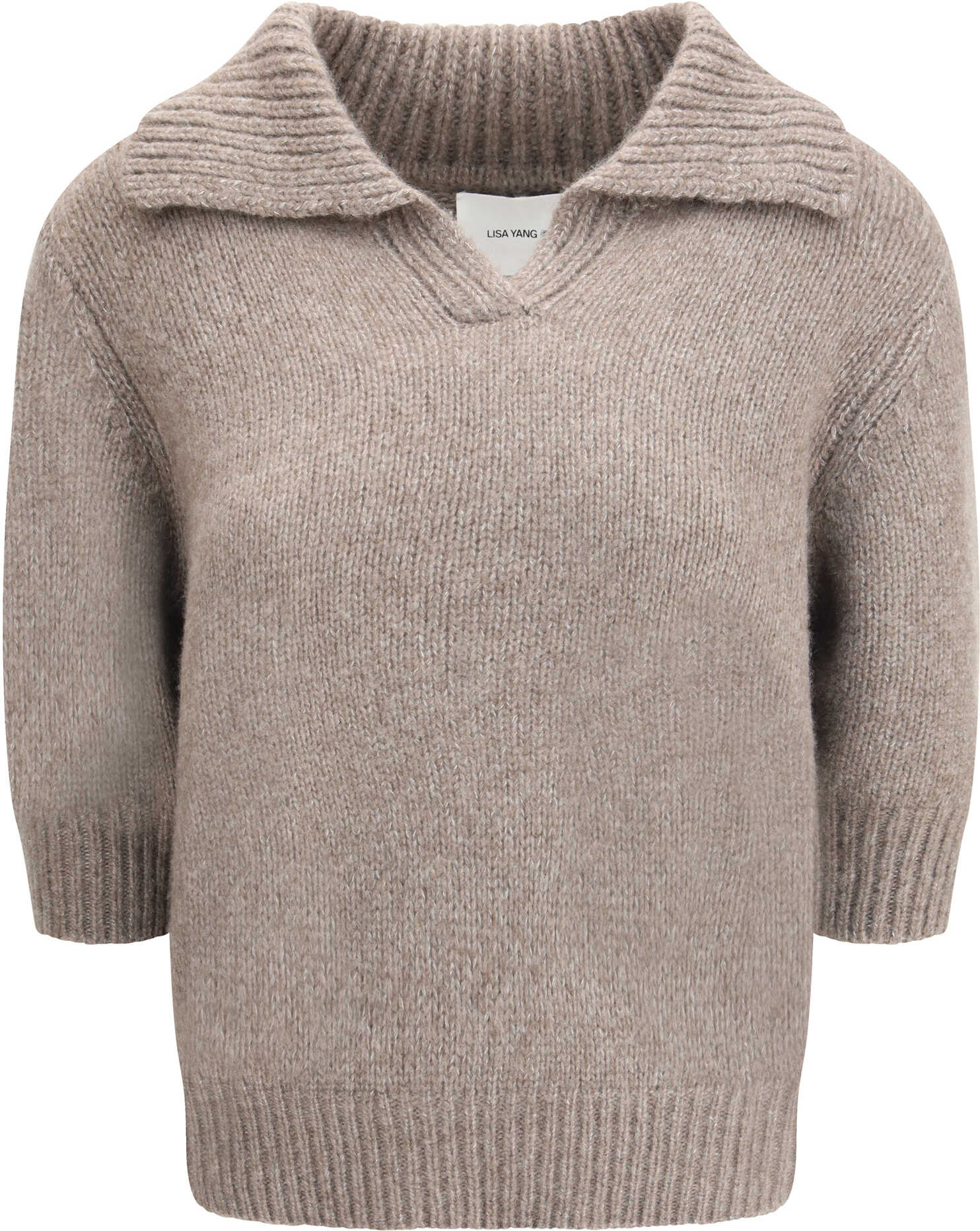 The Lailai Sweater by Lisa Yang is a sleek and minimal polo style featuring a V-neck collar, short sleeves and ribbed hem. An essential garment with a clean design, perfect for casual elegance.