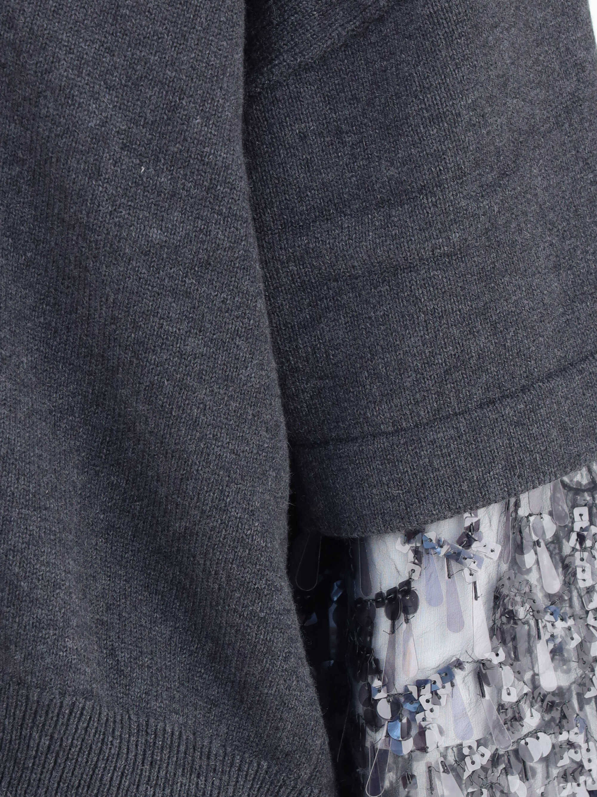 Brunello Cucinelli's cashmere Sweater is a refined and unique garment, featuring a V-neck and ribbed hem that enhance its elegant design. The special feature of this sweater is the double sleeves: the longer silk one is embellished with sequins that add a touch of sparkle, while the other maintains the classic ribbed style. Ribbed cuffs complete the look, giving a comfortable and sophisticated fit. A garment that combines luxury and originality flawlessly.