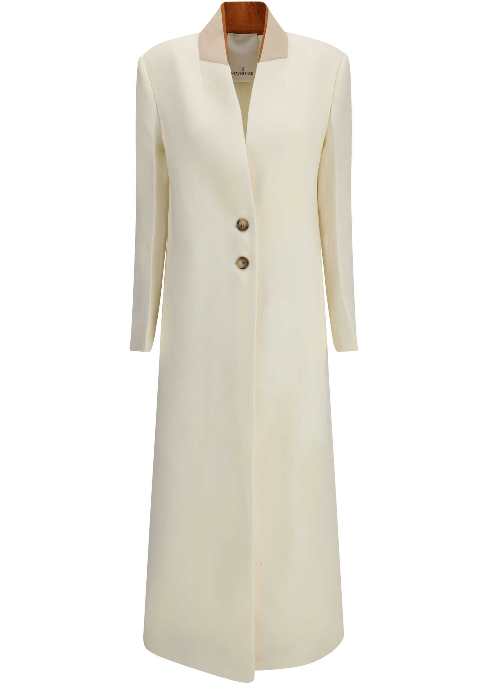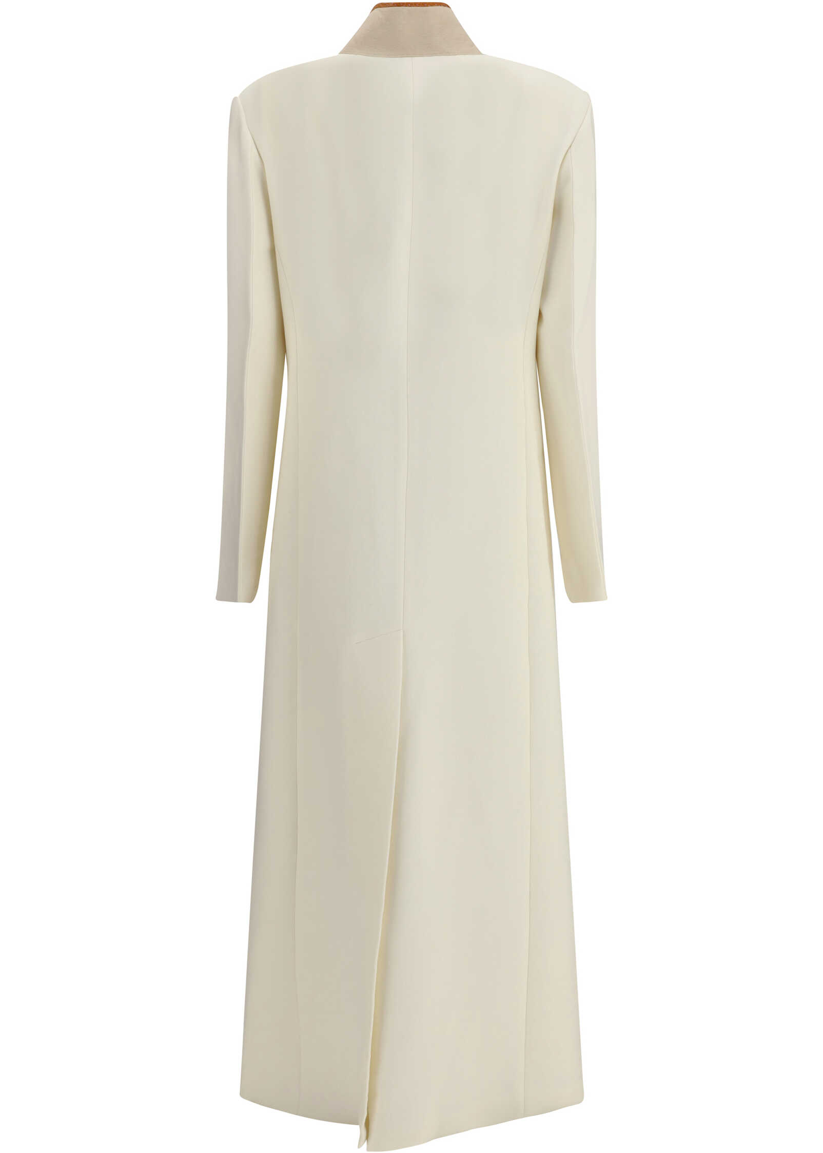 Di Stavnitser's Antwerp Coat is a long model with a slim, elegant and structured silhouette. It features a front button closure, a back slit for more freedom of movement and two side welt pockets. The ornate collar on the inside adds a refined and distinctive touch to the essential design.