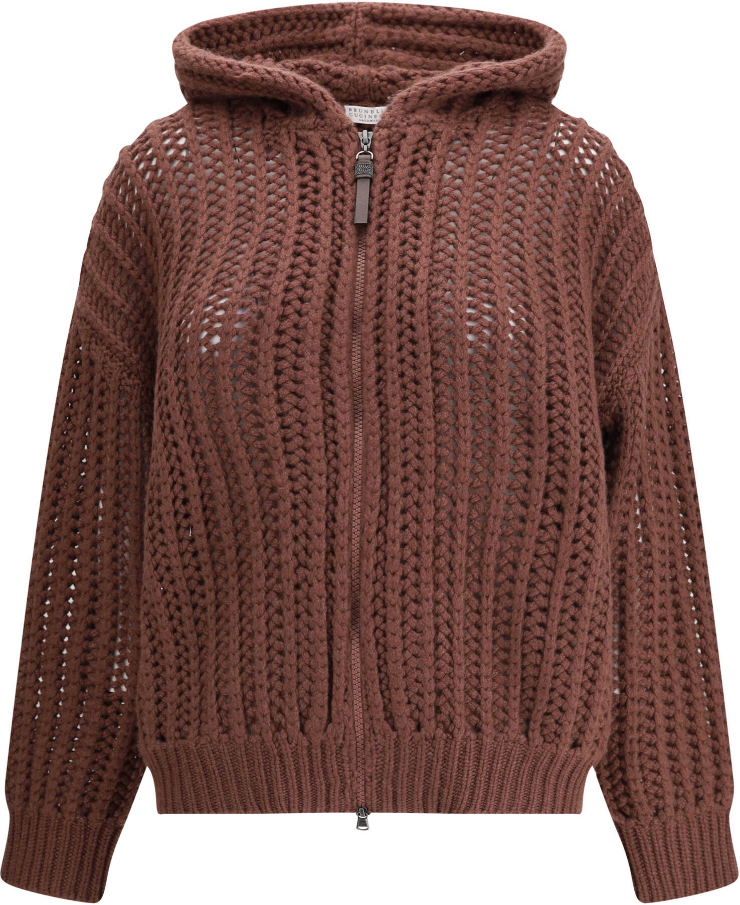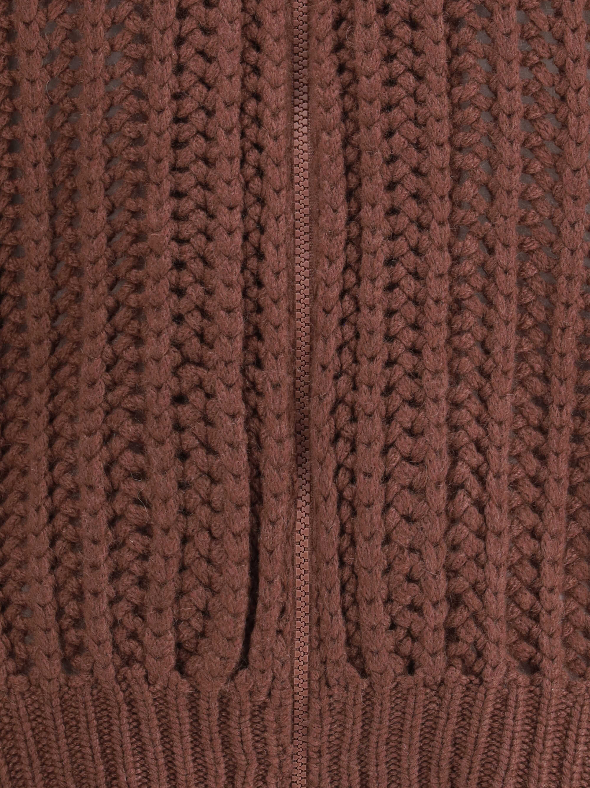 The Balloon Net Embroidery cashmere cardigan features a refined net work. Featuring a double-slider zipper, hood and balloon sleeves, it combines sophistication and comfort with a contemporary twist.