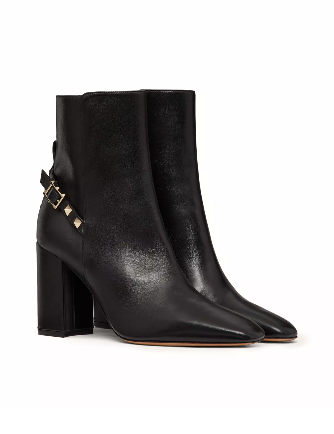 Black nappa leather Rockstud ankle boots Heel height: 6 cm
