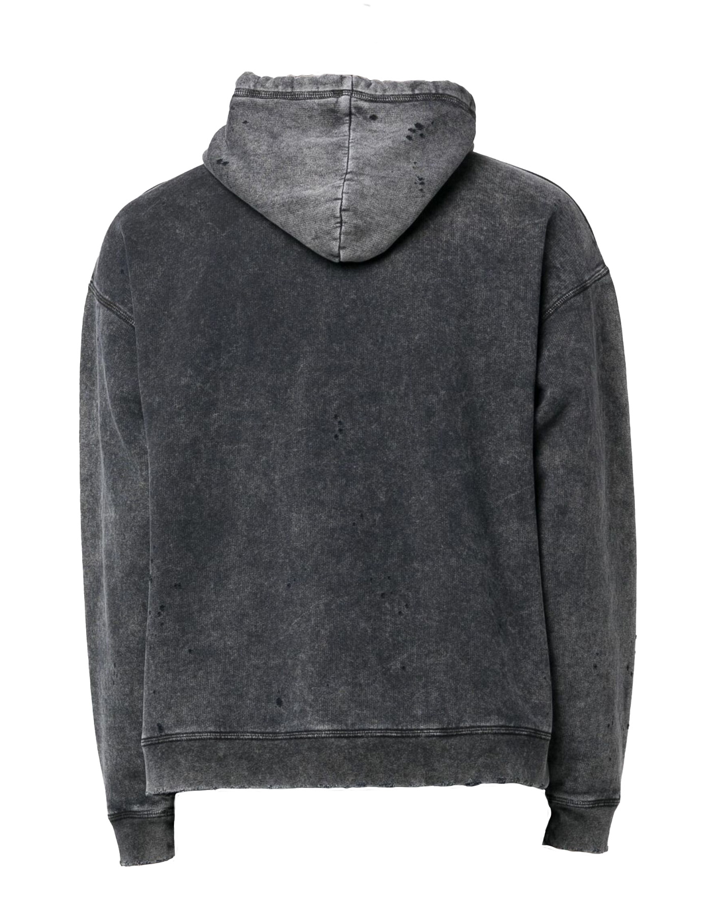 Dsquared2 oversized sweatshirt featuring a neon orange logo print at the front. Designed with a drawstring hood and kangaroo pocket, it is crafted of soft fleece-back cotton jersey with a faded wash and distressed detailing for a worn-out look. Ribbed cuffs and hem. The model is 187 cm tall and wears a size L.