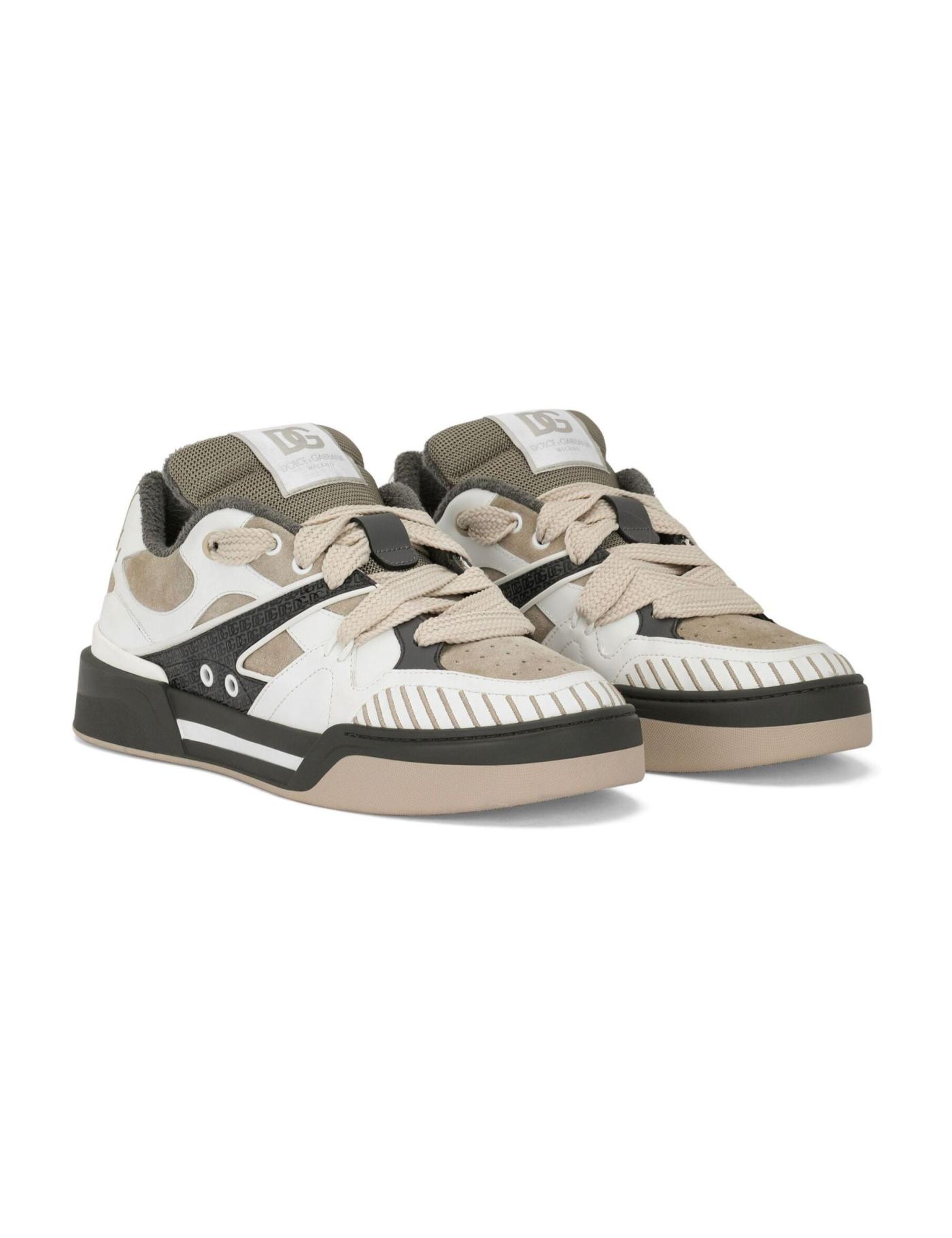 Fusing the brand’s iconic Roma and Miami sneakers, Dolce & Gabbana presents the New Roma sneakers. The low-top silhouette is crafted from leather in a panelled design and accented with a logo patch at the tongue.