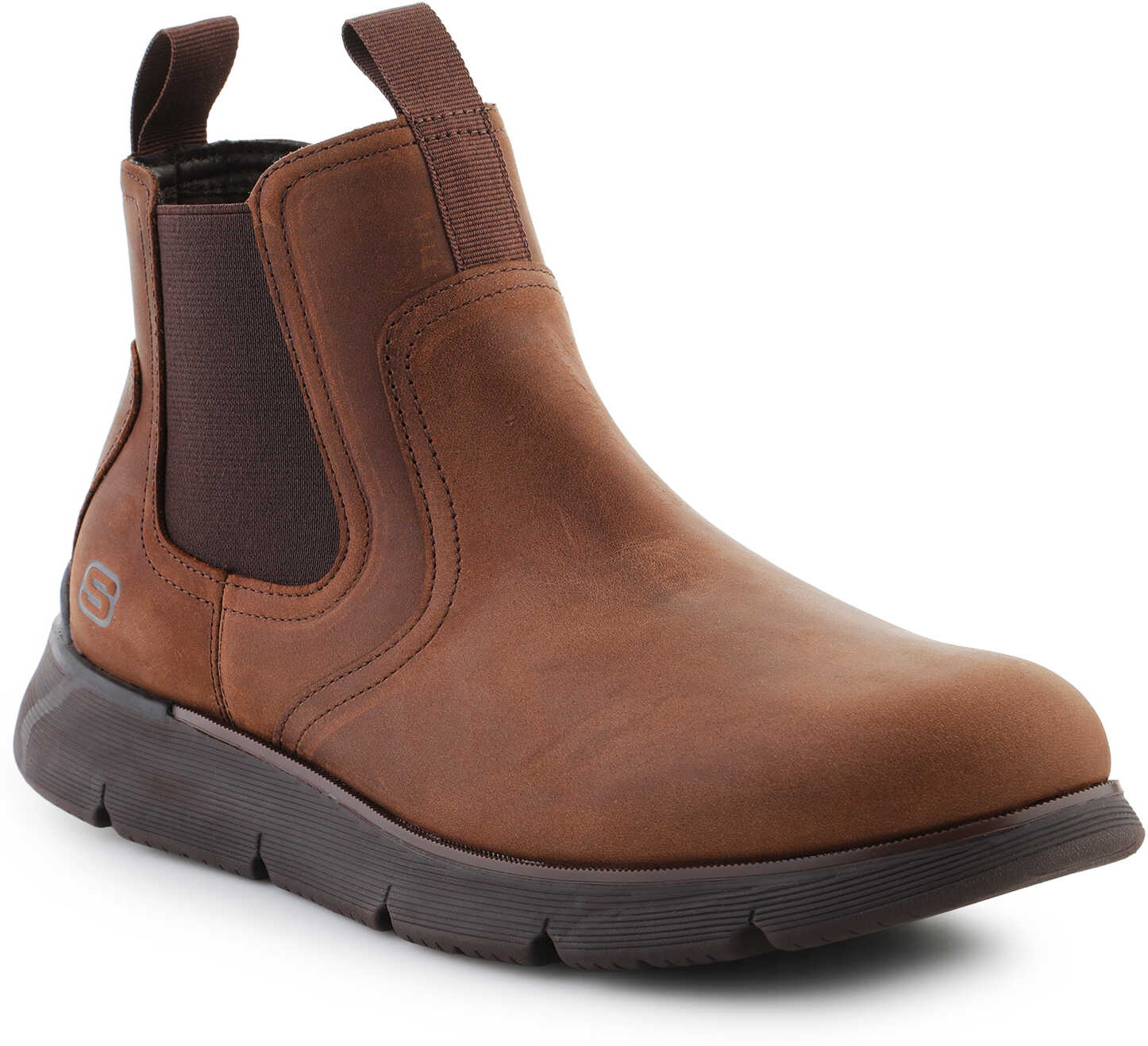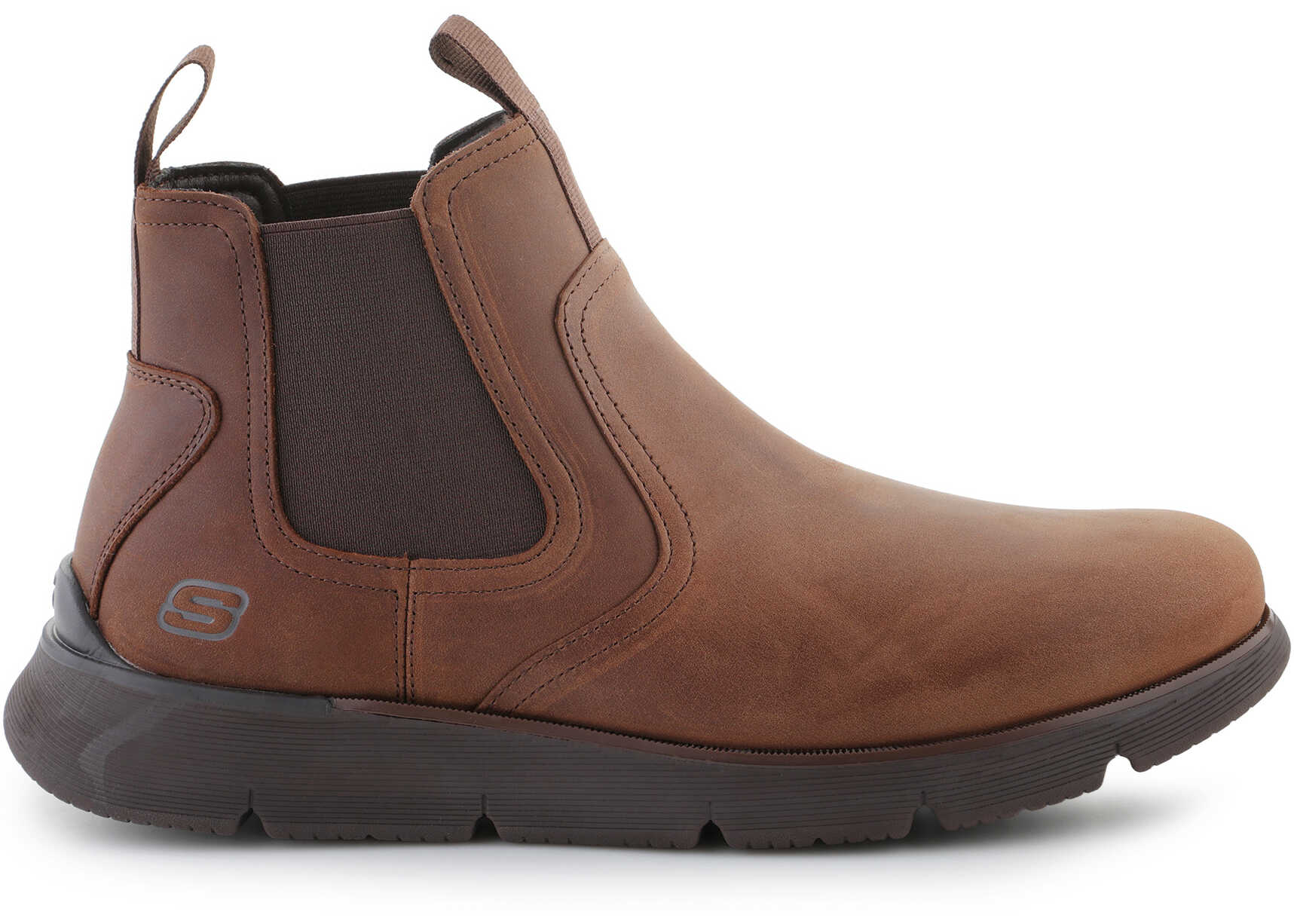 The Skechers Augustino – Paulo 205227-CHOC combines sophisticated design with everyday comfort. Its upper is made of genuine leather and textile, offering both durability and flexibility. Dual gore panels at the sides make for easy slip-in and a snug fit.