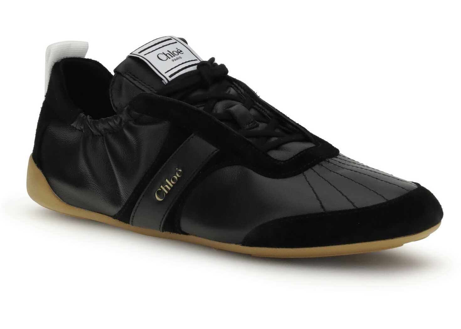 The Kick Sneakers by Chloè draw inspiration from the world of ballet and boxing, combining elegance and comfort. Made of soft sheepskin and suede, they feature an ultralight silhouette and a flexible recycled rubber sole that wraps around the foot like a second skin. The Chloé logo decorates the side and back loop, while the boxing-style label on the tongue completes the design of these sneakers with a refined, sporty allure.