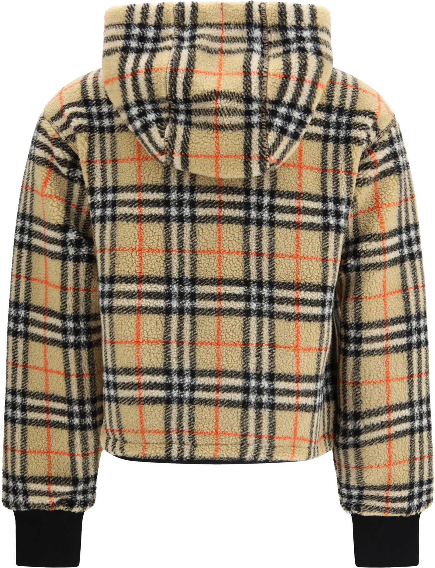 The cropped hooded Check fleece Jacket by Burberry is crafted from a soft cashmere and wool blend knit, featuring the house’s signature Burberry Check in archive beige. Designed with a cropped cut and regular fit, it includes a breathable mesh lining for enhanced comfort. Functional details such as the two-way zip closure, side zip pockets, and drawstrings at the hem and hood meet heritage touches like the silicone Equestrian Knight Design patch at the chest — a nod to an archival emblem from the 1980s.