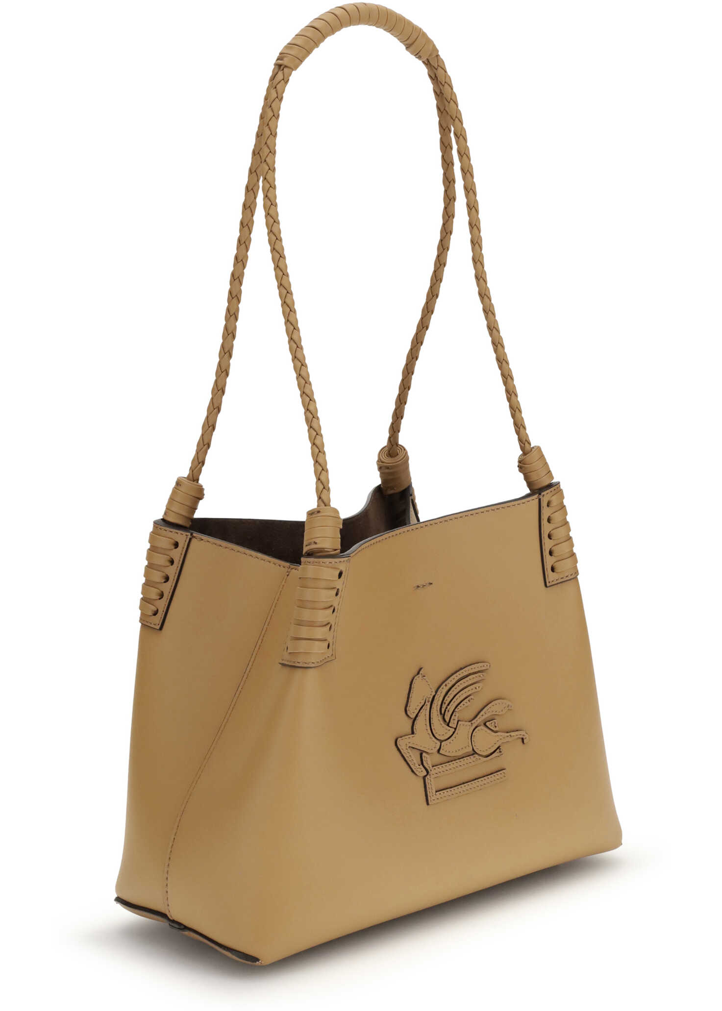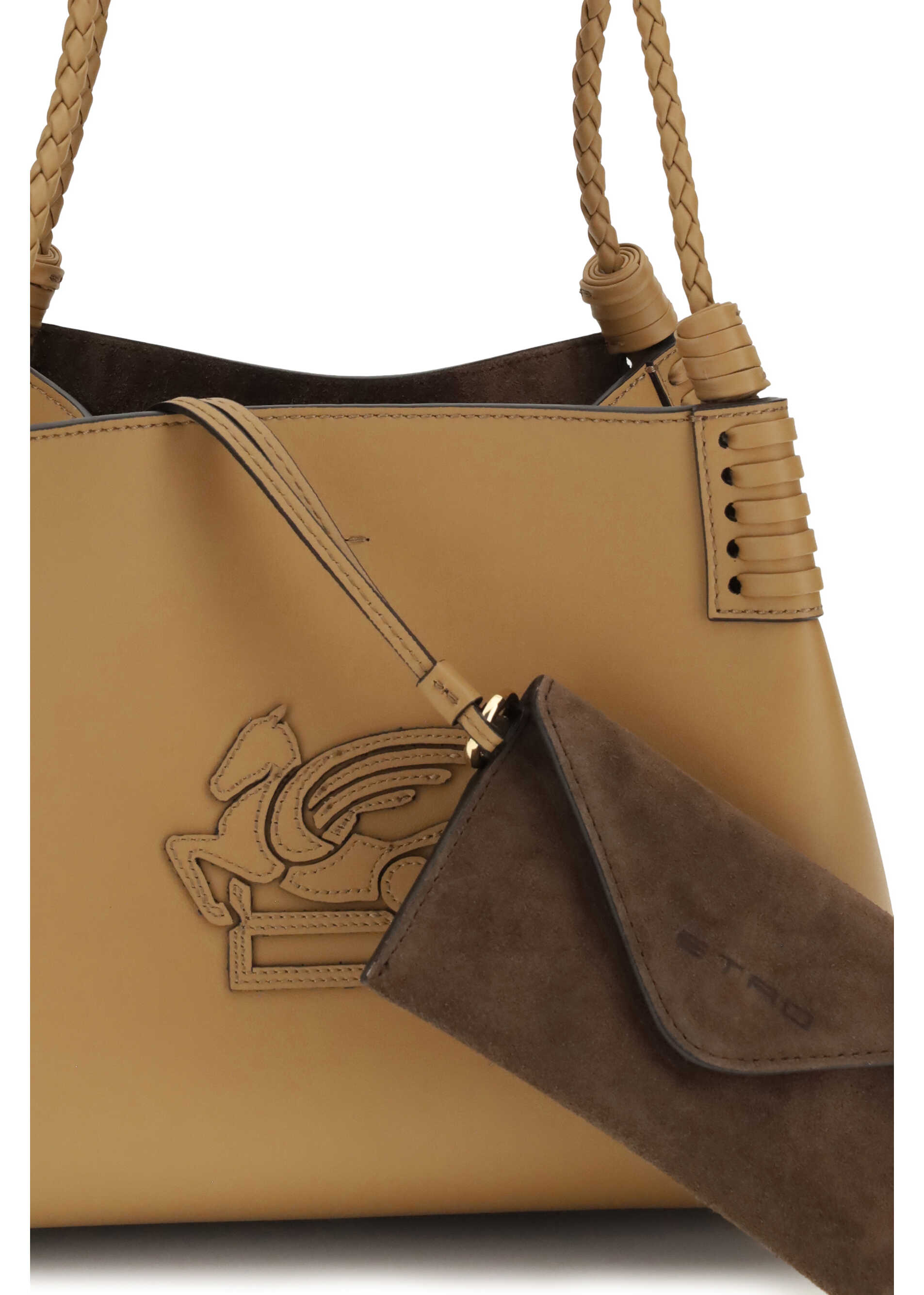 The Libra shopping Bag by Etro is crafted from smooth-grain leather and stands out for its elegant, refined design. It features an open top with a clasp closure, braided handles, and the signature Pegaso motif that highlights the brand’s iconic style. The interior includes a single compartment with a removable pouch, while metal feet engraved with the logo complete the piece with a touch of sophistication.