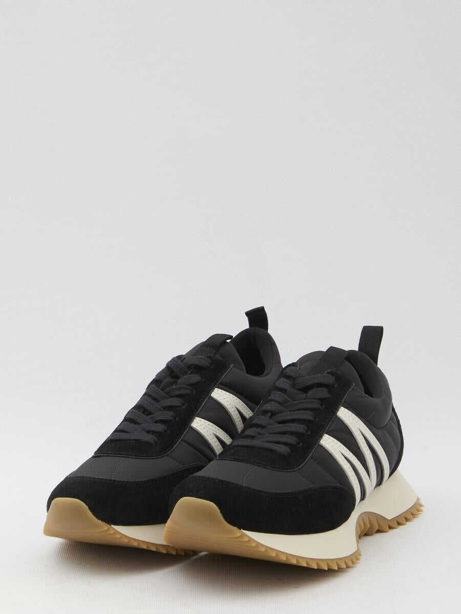 Pacey sneakers in black nylon and suede. They feature a lace-up closure, white M-shaped detail on the sides, external padding, a black leather logo patch on the heel, fluorescent yellow interior, and TR outsole. Dust bag included. Any imperfections in the leather should not be considered manufacturing defects but rather a characteristic of the material.