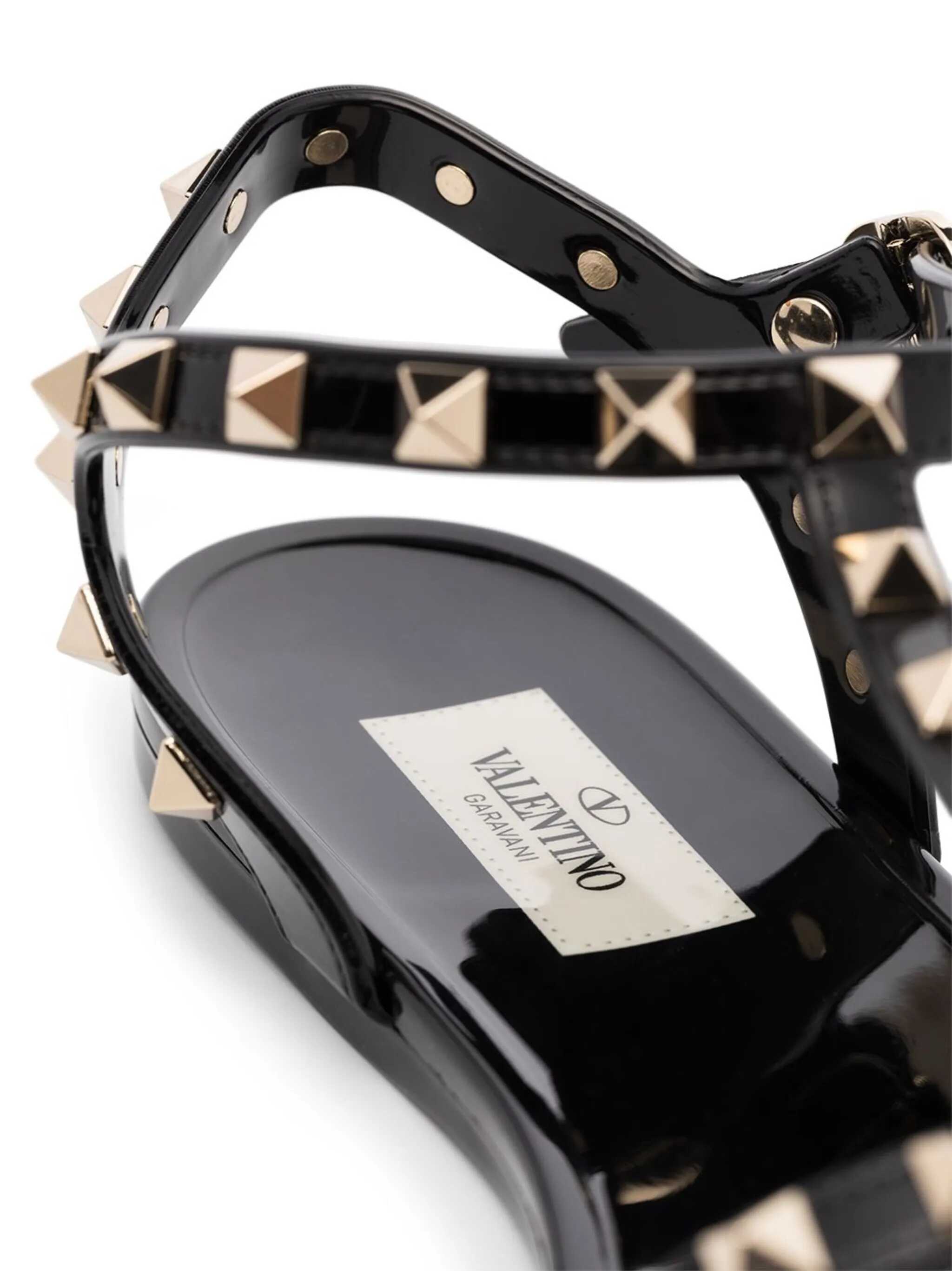 black rubber gold-tone Rockstud embellishment side buckle fastening double-strap design branded insole flat rubber sole